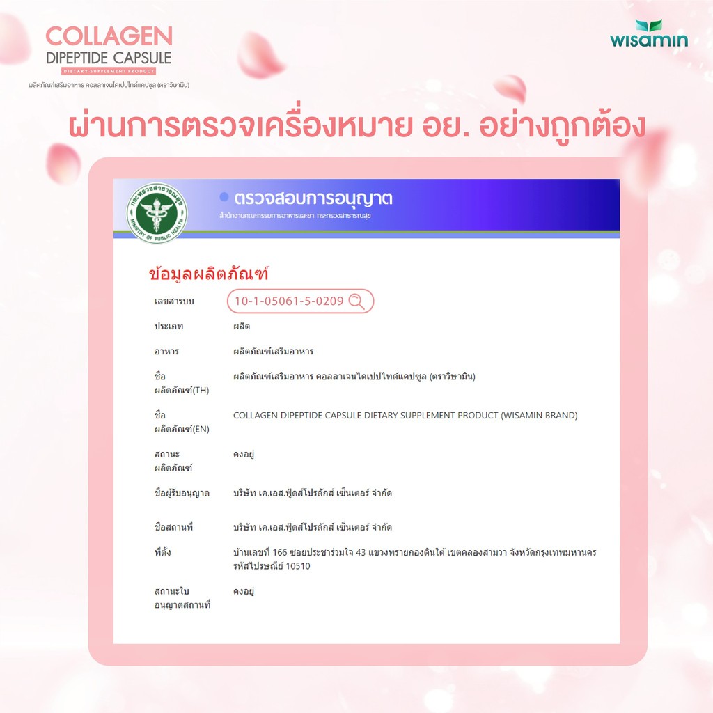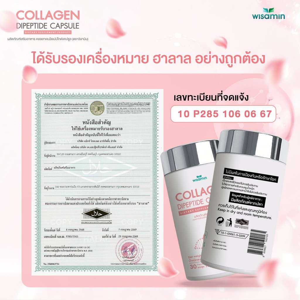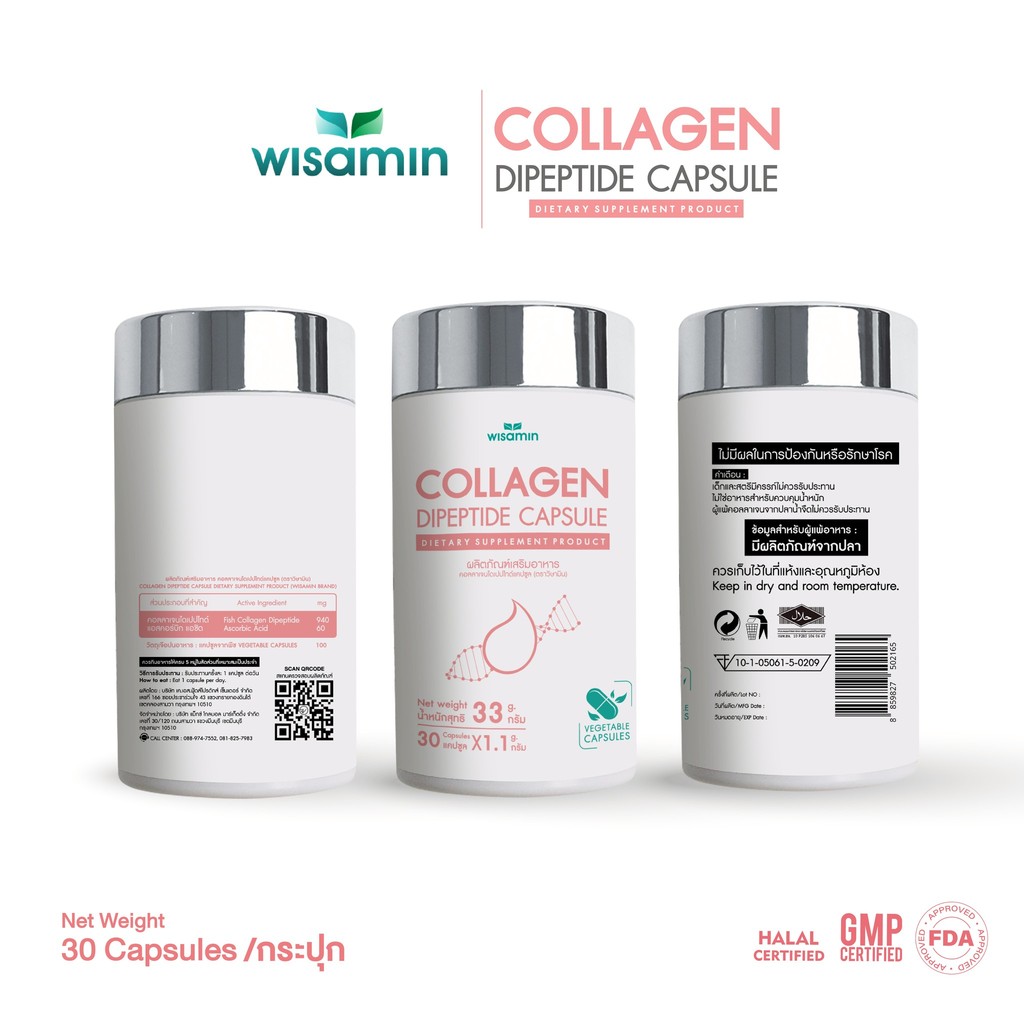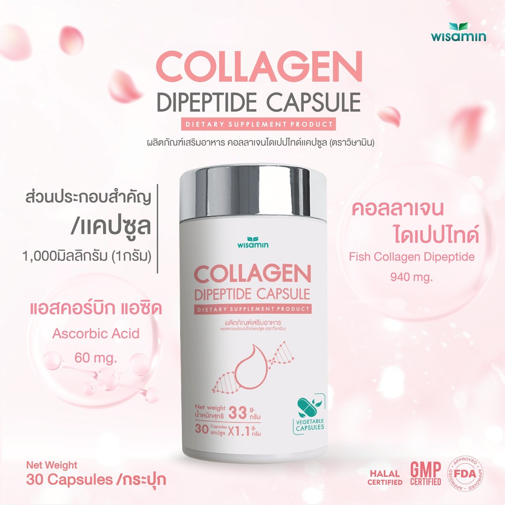 (แพคคู่ 2 กระปุก) COLLAGEN DIPEPTIDE คอ ลลาเจนไดเปปไทด์แคปซูล 1,000 mg (ตราวิษามิน) จำนวน 2 กระปุก รวม 60 แคปซูล