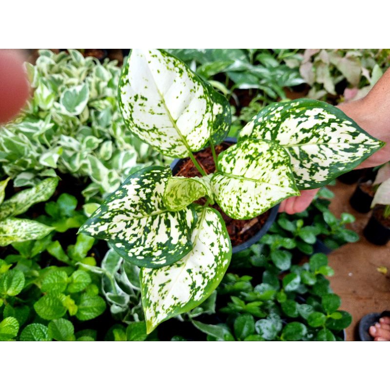 อโกนีมา อัญมณีขาว หรืออัญมณีเงิน🤍🍀จัดส่งพร้อมกระถาง 6 นิ้ว🤍🌿