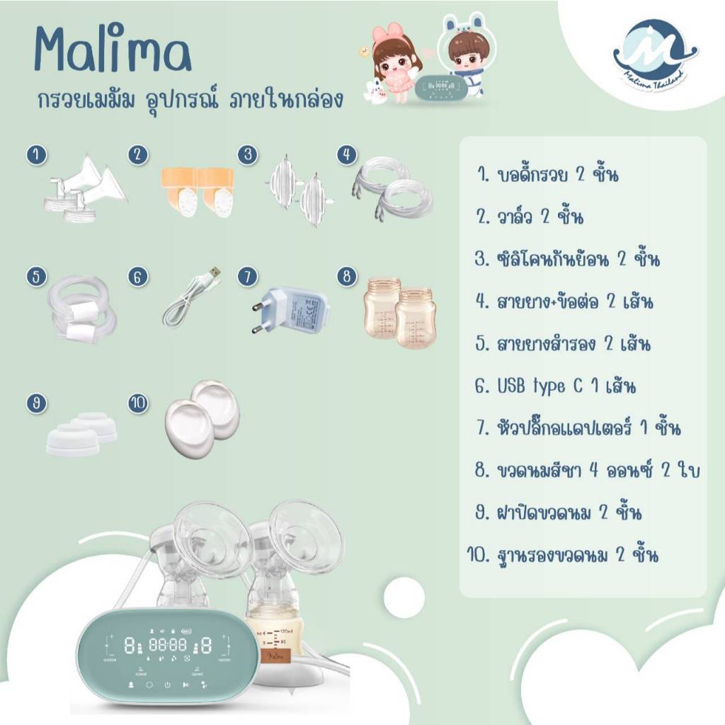 Malima เครื่องปั๊มนมไฟฟ้า รุ่น Malima, Malish, Celia Duo, Air Plus