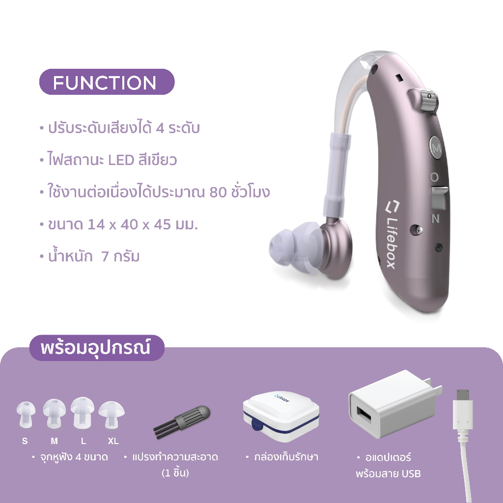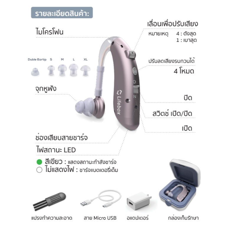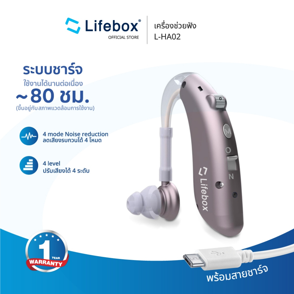 (พร้อมส่ง) ⭐รุ่นขายดี เครื่องช่วยฟัง แบบชาร์จ ใส่ได้ทั้งสองข้าง รับประกัน 1 ปี | LIFEBOX L-HA 02