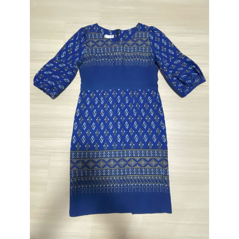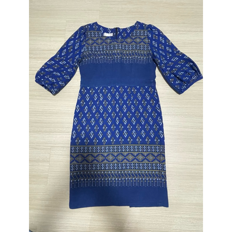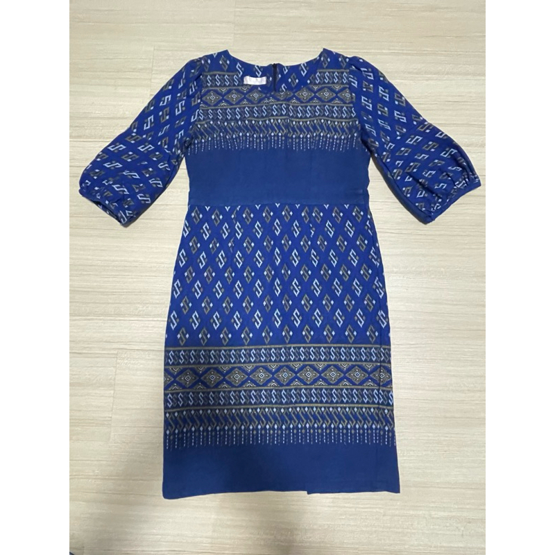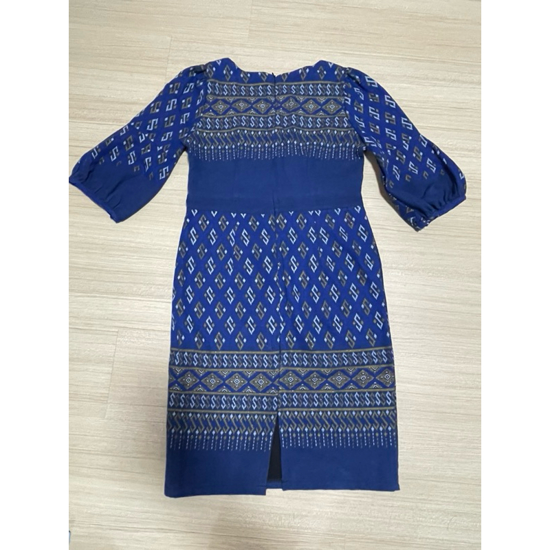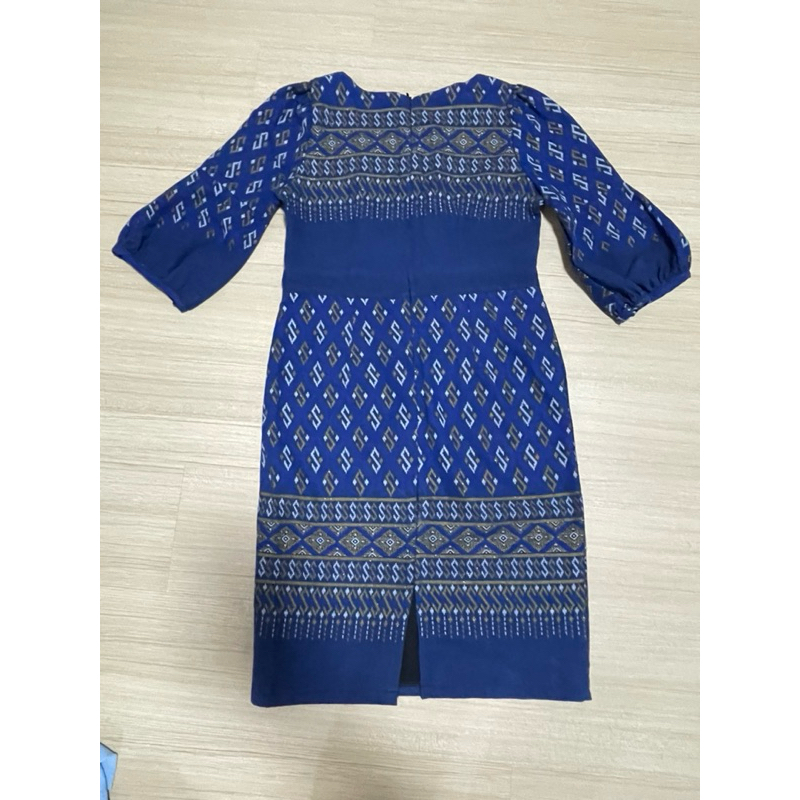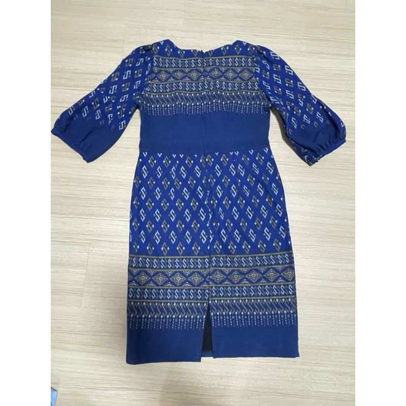 เดรสผ้าไทยลายขอสีน้ำเงิน ป้าย RADA THAI FASHION ไซส์ XL