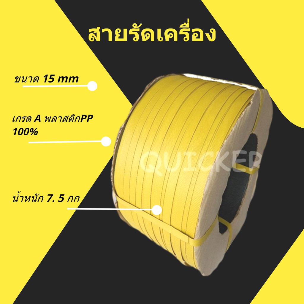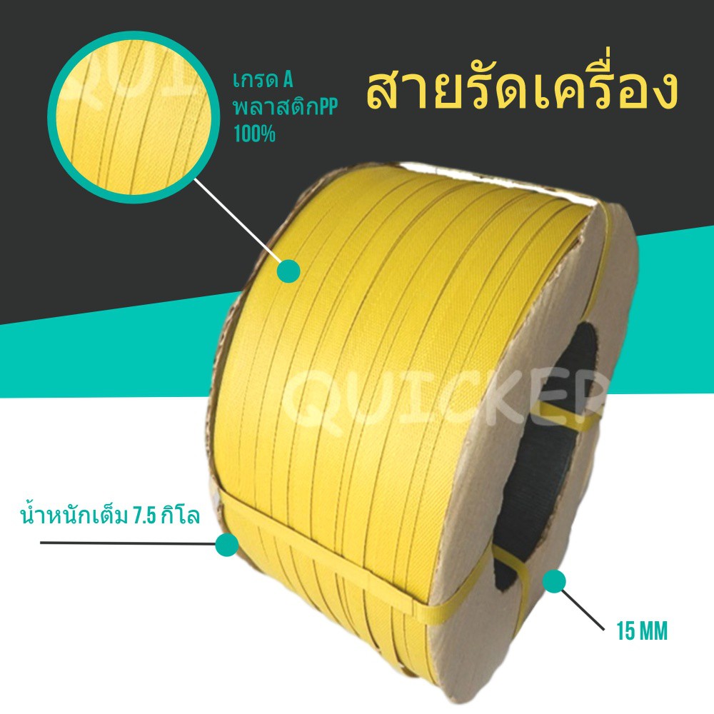 สายรัดพีพี สายรัดแพ๊คกล่อง 15 มิล 7.5 kgs สีเหลือง ส่งฟรี