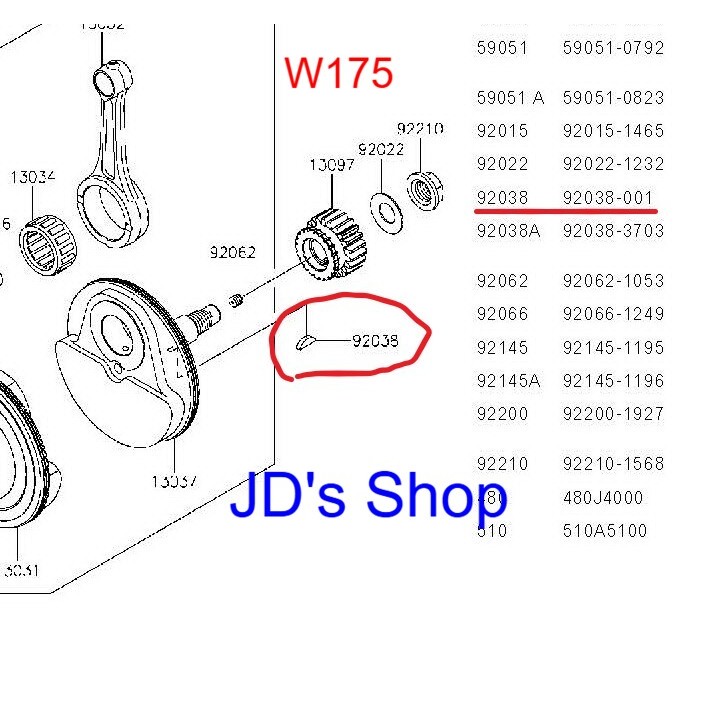 ลิ่มเพลาข้อเหวี่ยง,บาล้านเซอร์ (เฉพาะรถตระกูล 150 2 จังหวะ) W175,Boss 175,KRR,SER,Victor,ZX 150,Leo star (92038-0001)