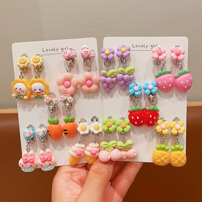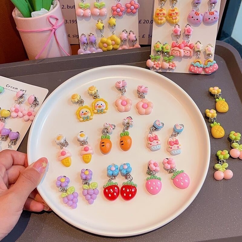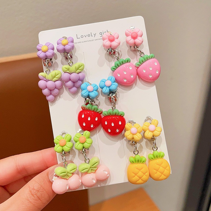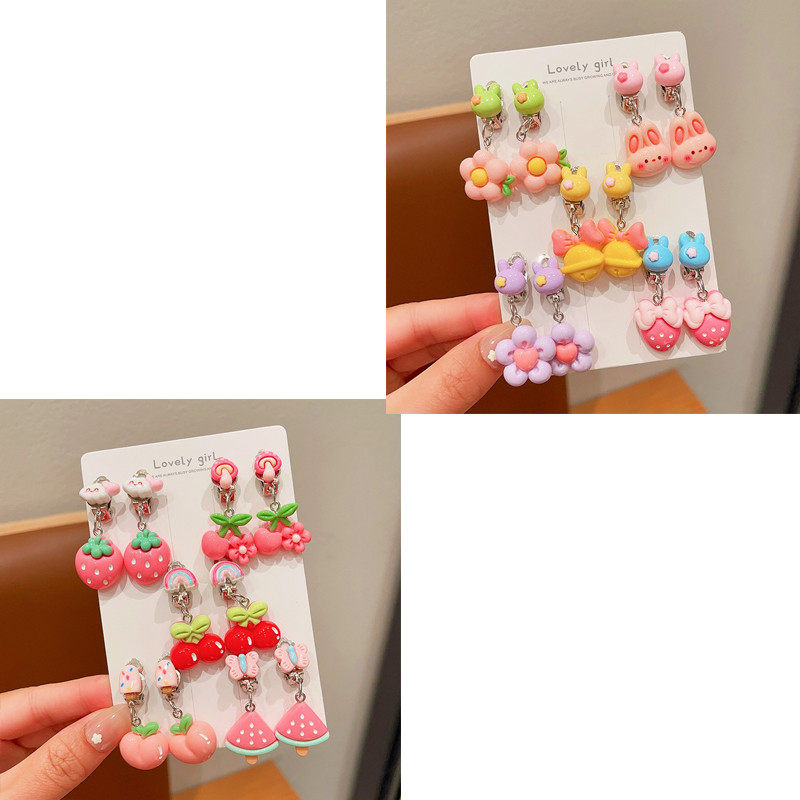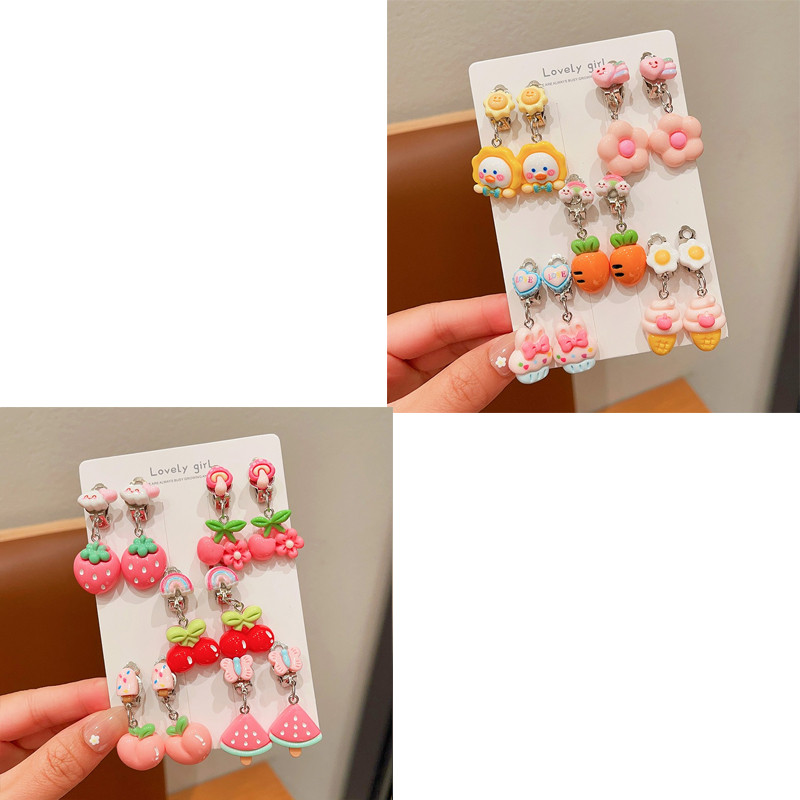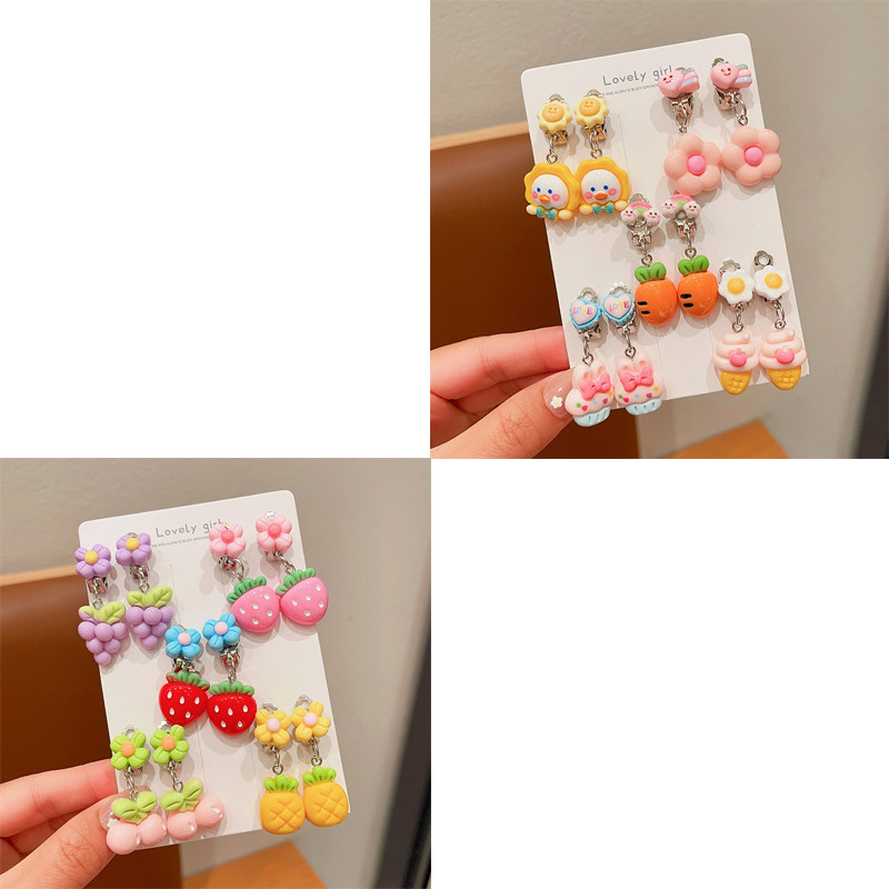 Noคลิปหูป้องกันอาการปวดเจาะน่ารักการ์ตูนผลไม้สัตว์ต่างหูสําหรับสาวน่ารัก