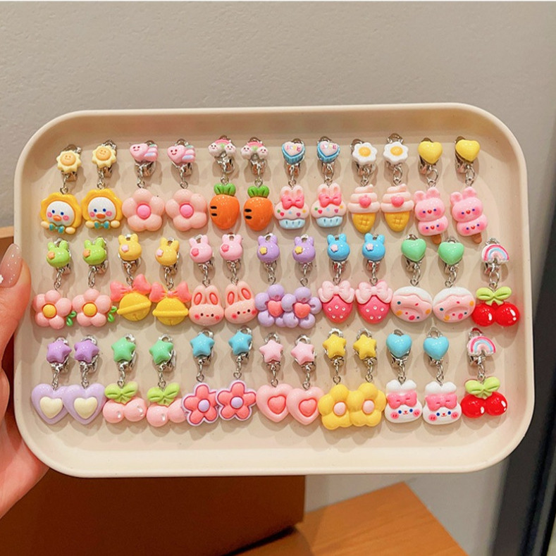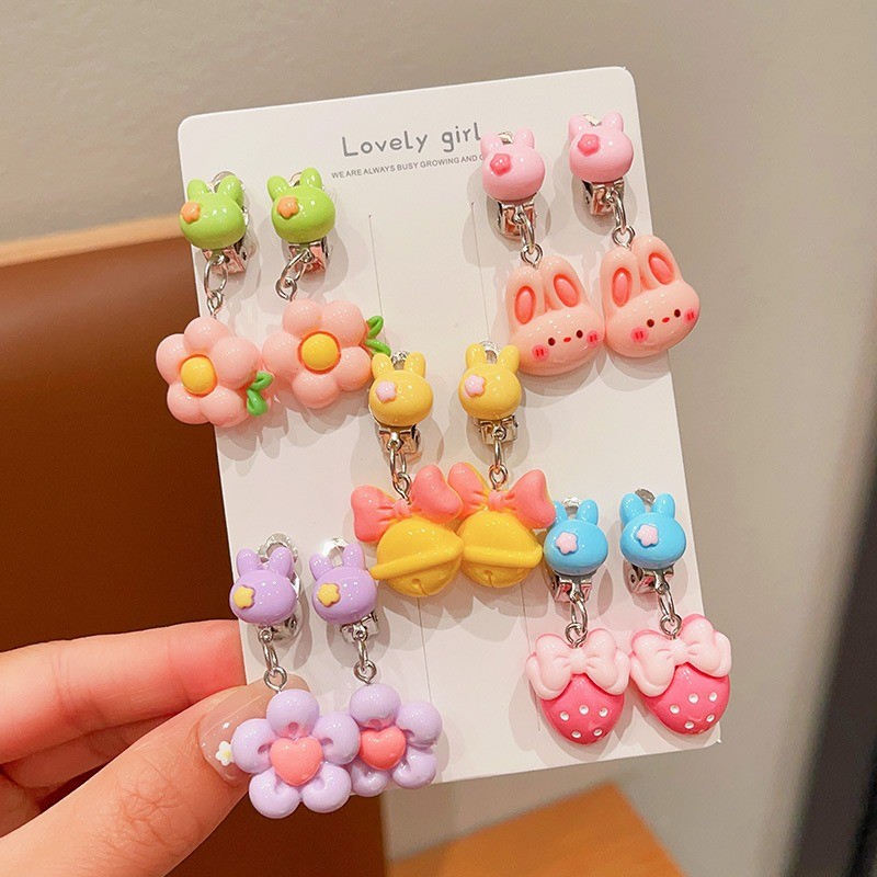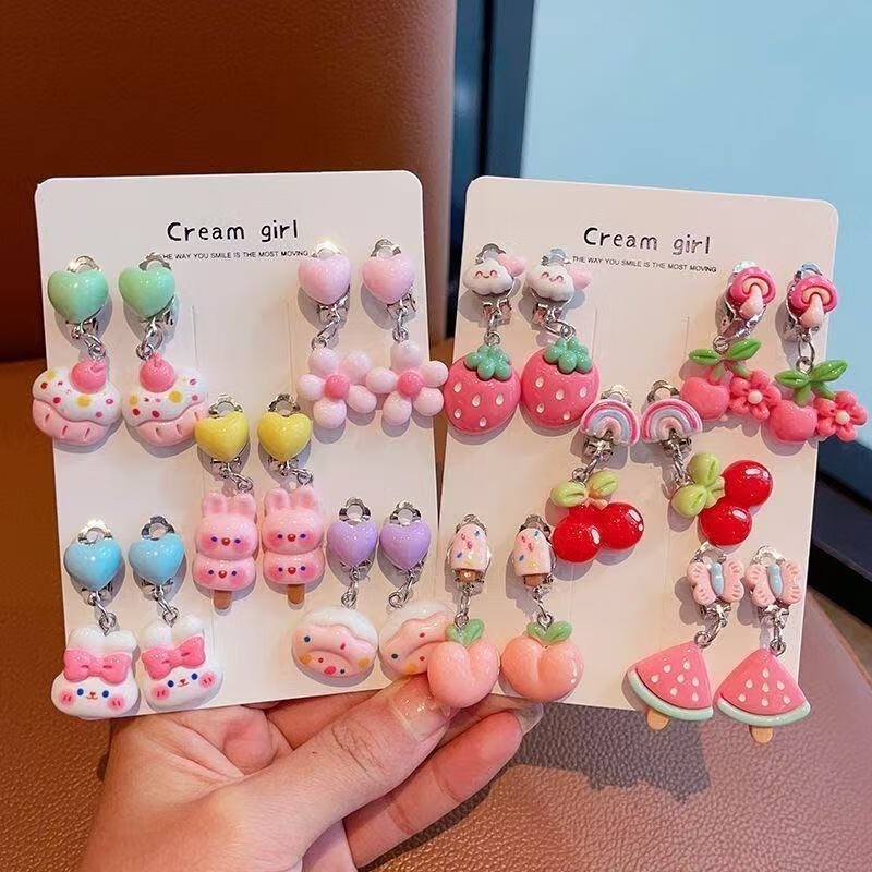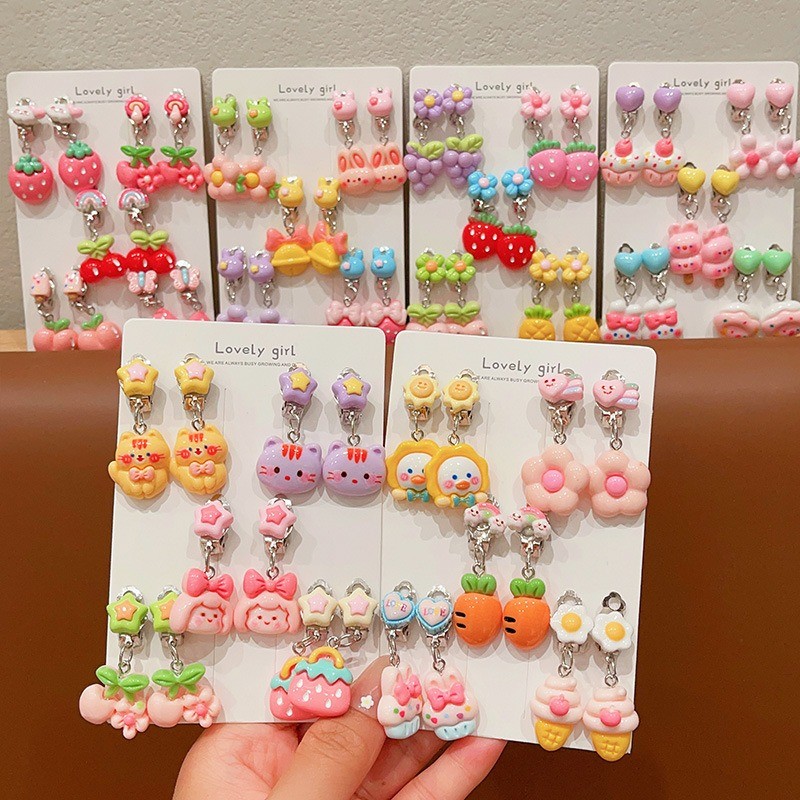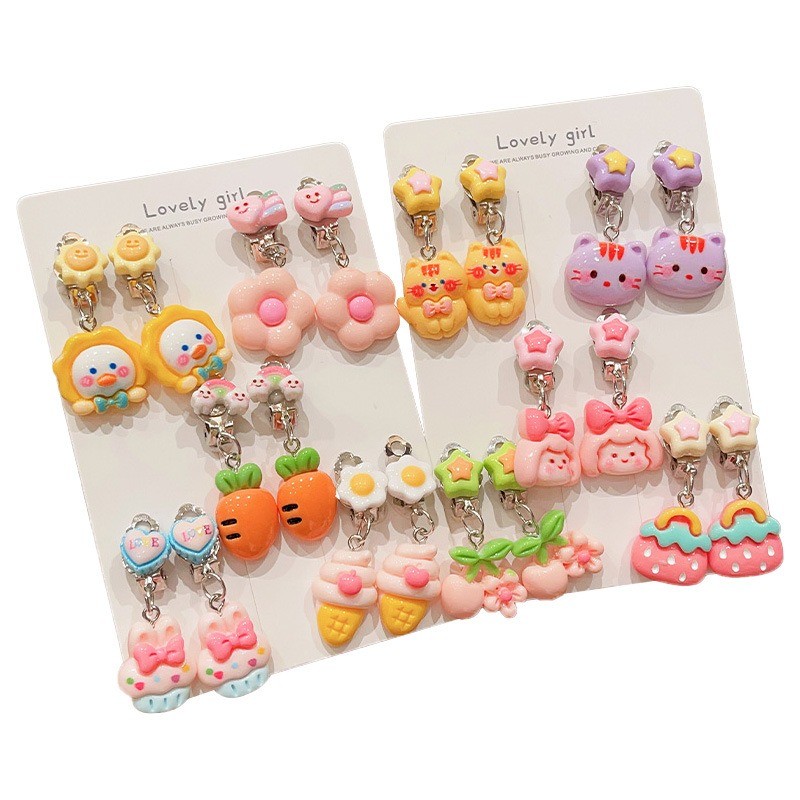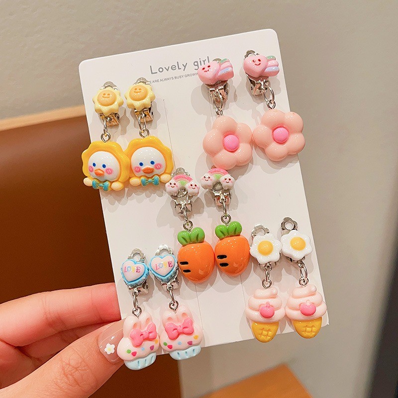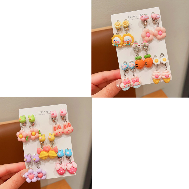Noคลิปหูป้องกันอาการปวดเจาะน่ารักการ์ตูนผลไม้สัตว์ต่างหูสําหรับสาวน่ารัก