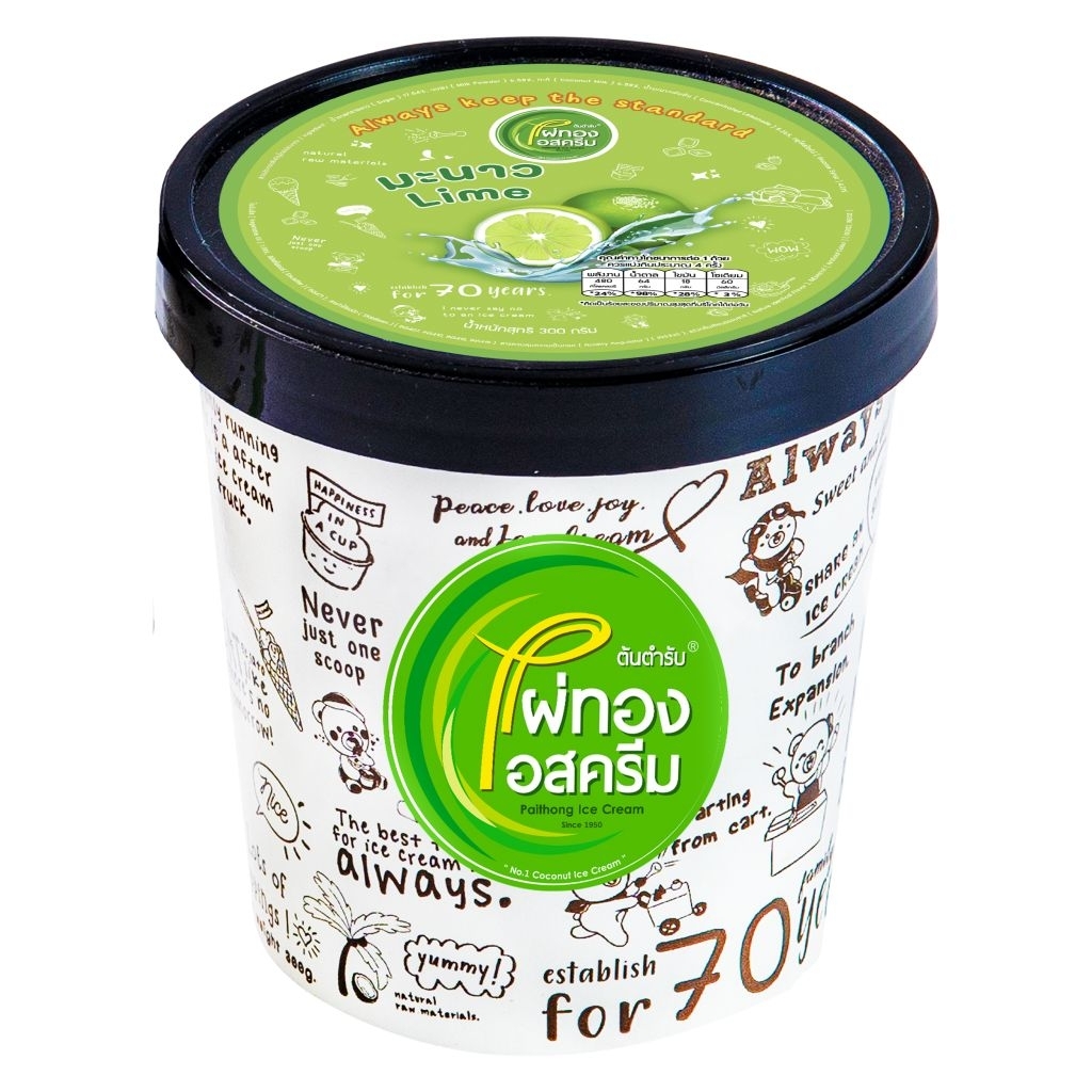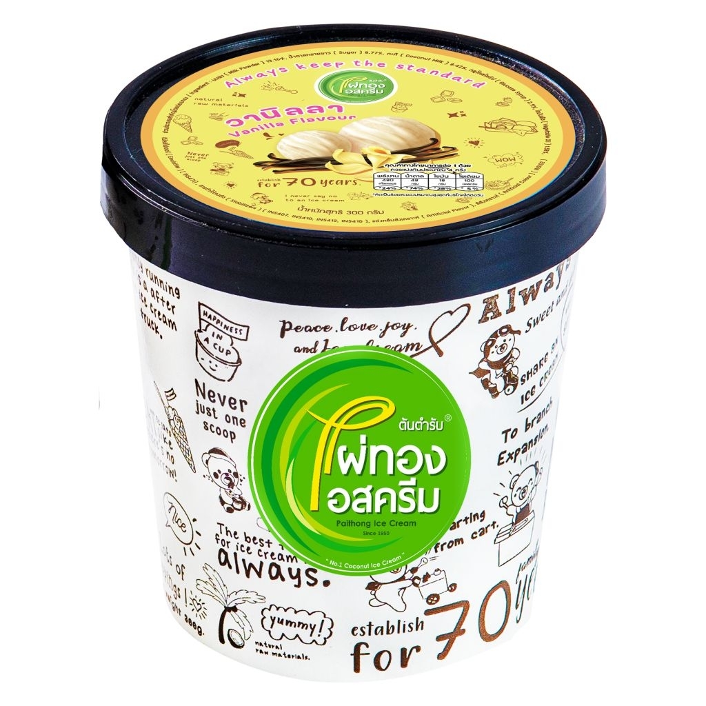 ไผ่ทองไอสครีม กล่อง=1.1 กก./ ไพนต์=300 ก./ ถ้วย 70 ก. // Paithong Ice Cream size box=1.1 kg./ Pint=300 g./ Cup=70 g.