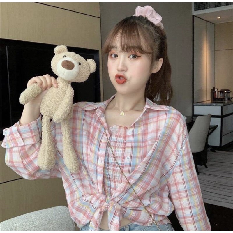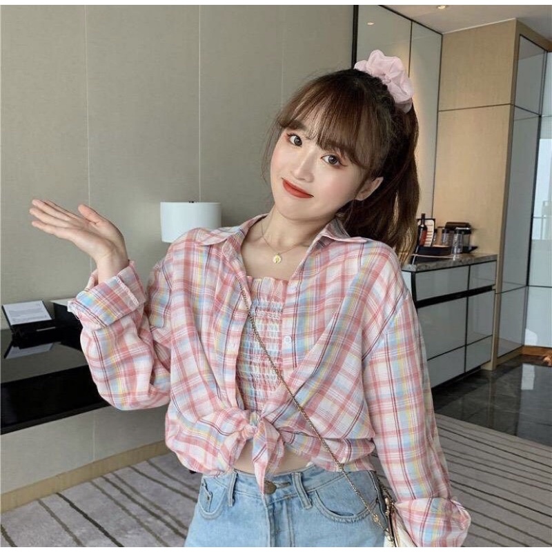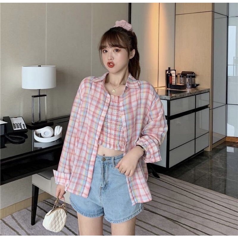Scott Shirt เสื้อเชิ้ตoversize+เเถมฟรีสายเดี่ยว ลายสก็อต