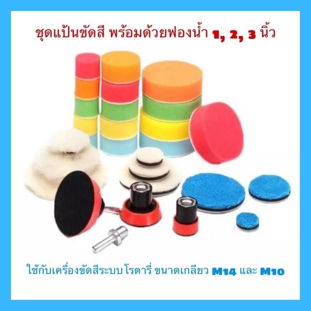 ชุดแป้นจับฟองน้ำขัดสี M10 หรือ M14 และชุดฟองน้ำ ขนาด 1, 2, 3 นิ้ว คอมโบ้เซ็ต 28 ชิ้น