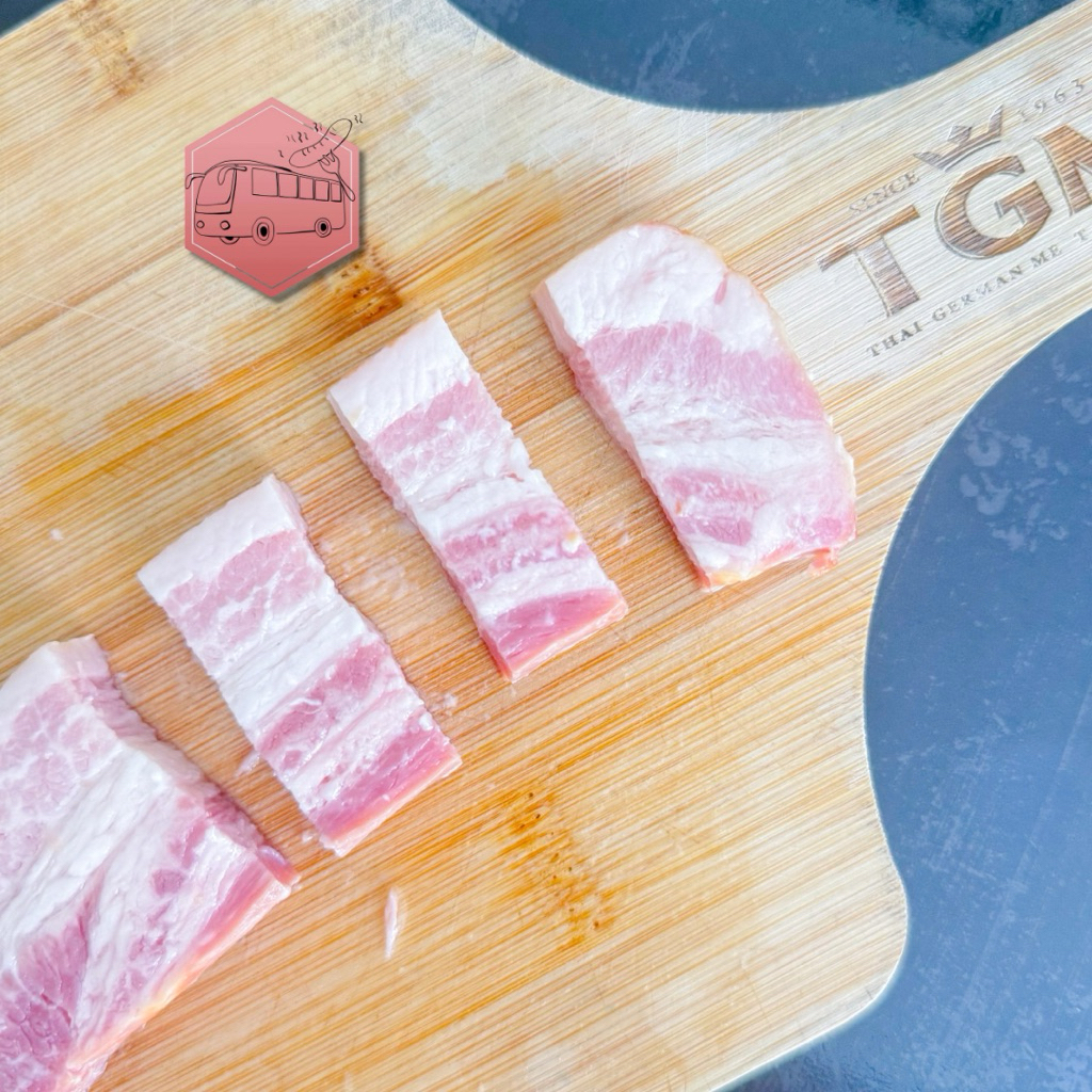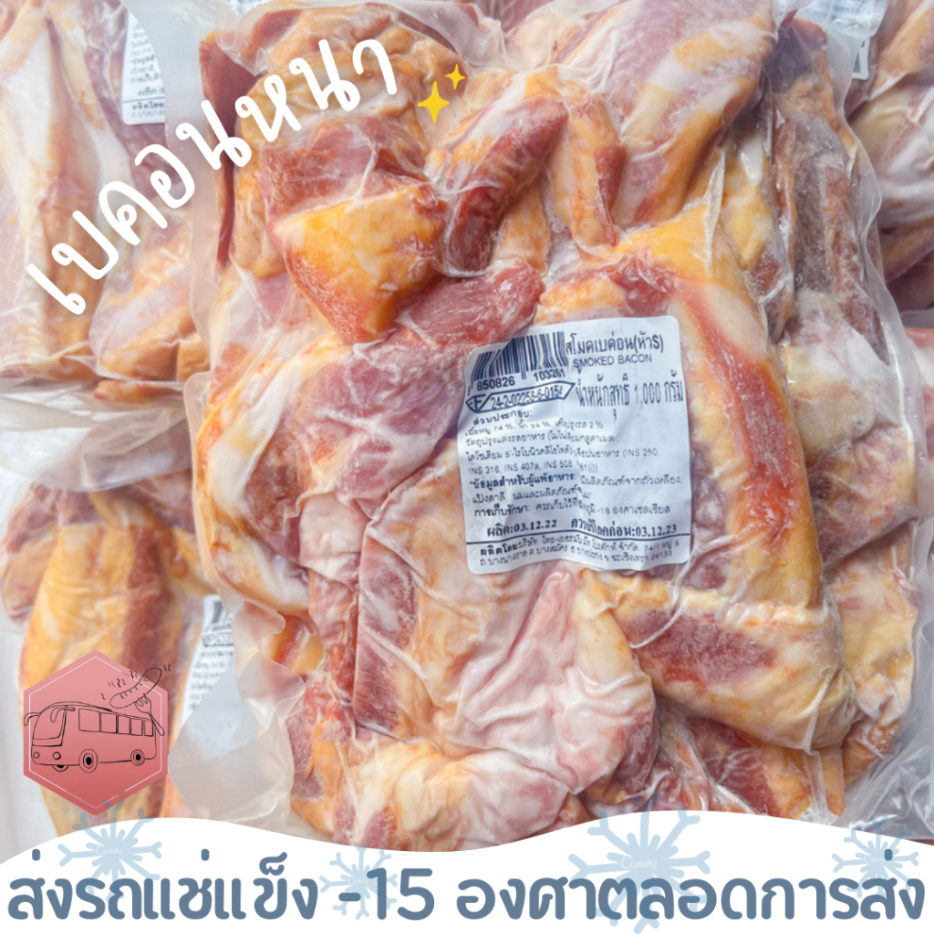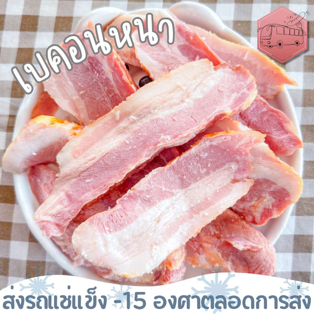 เบคอนรมควันหนา TGM (อาจจะมีแบบบางปนไปด้วยนิดหน่อยนะคะ) เบคอนแท้ ไม่ใช่เบคอนอัดก้อน หั่นชิ้นเองได้ ทำได้หลายเมนู