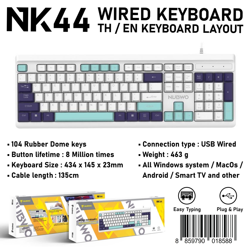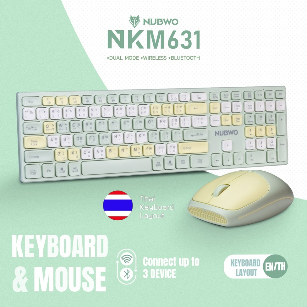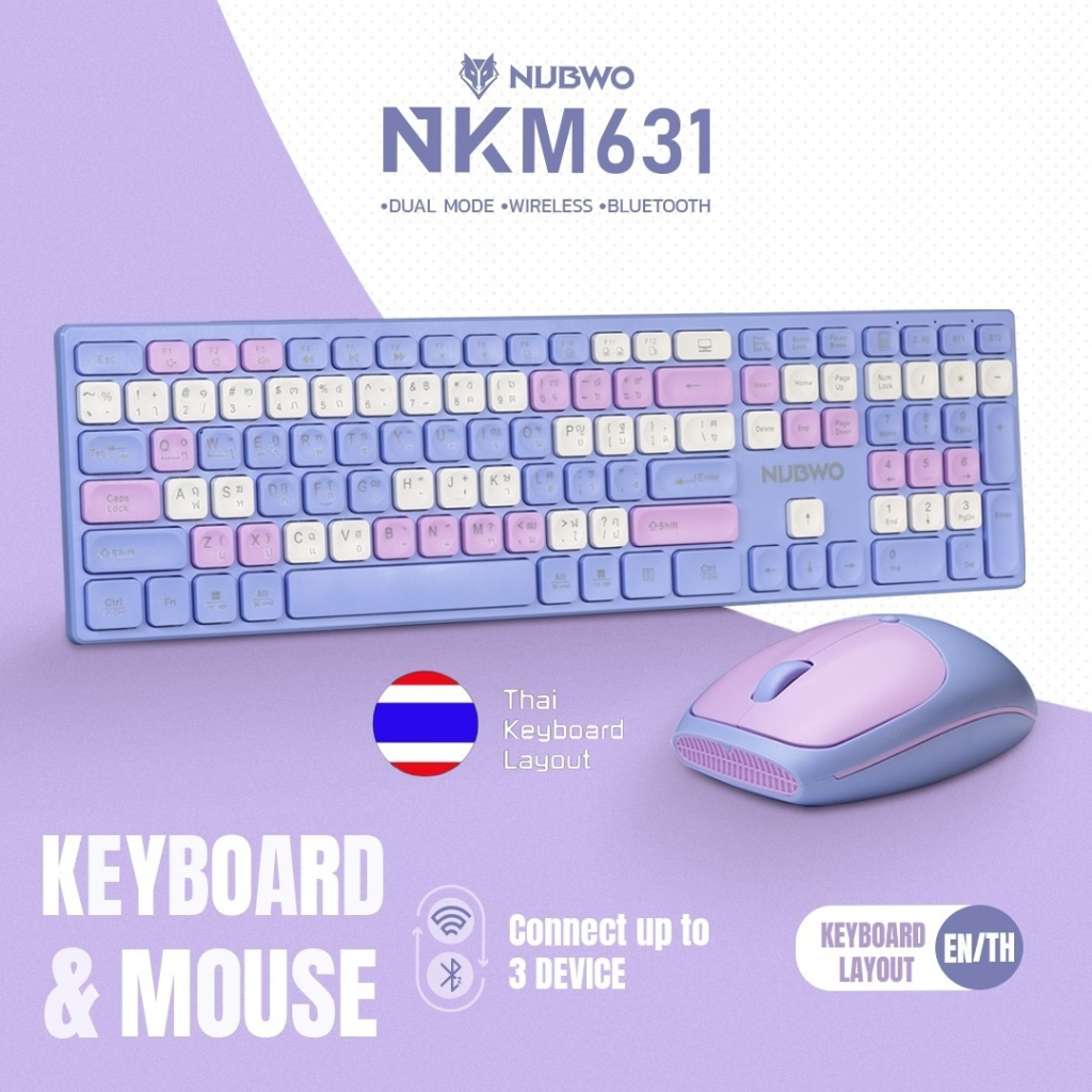 Nubwo NKM-631 คีย์บอร์ดและเมาส์ไร้สาย ใช้ได้ทั้งแบบไวร์เลสและ Bluetooth สีสันสดใส เชื่อมได้ถึง 3 Device รับประกัน 1 ปี