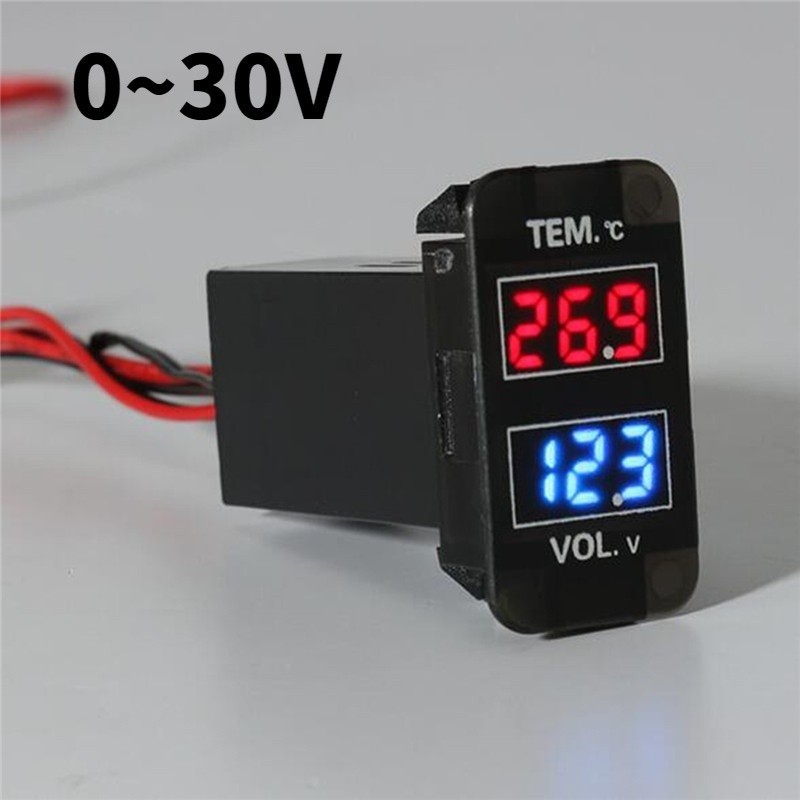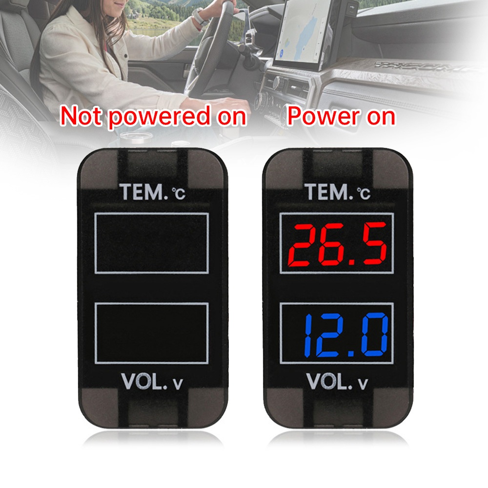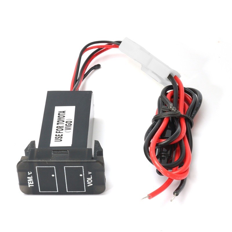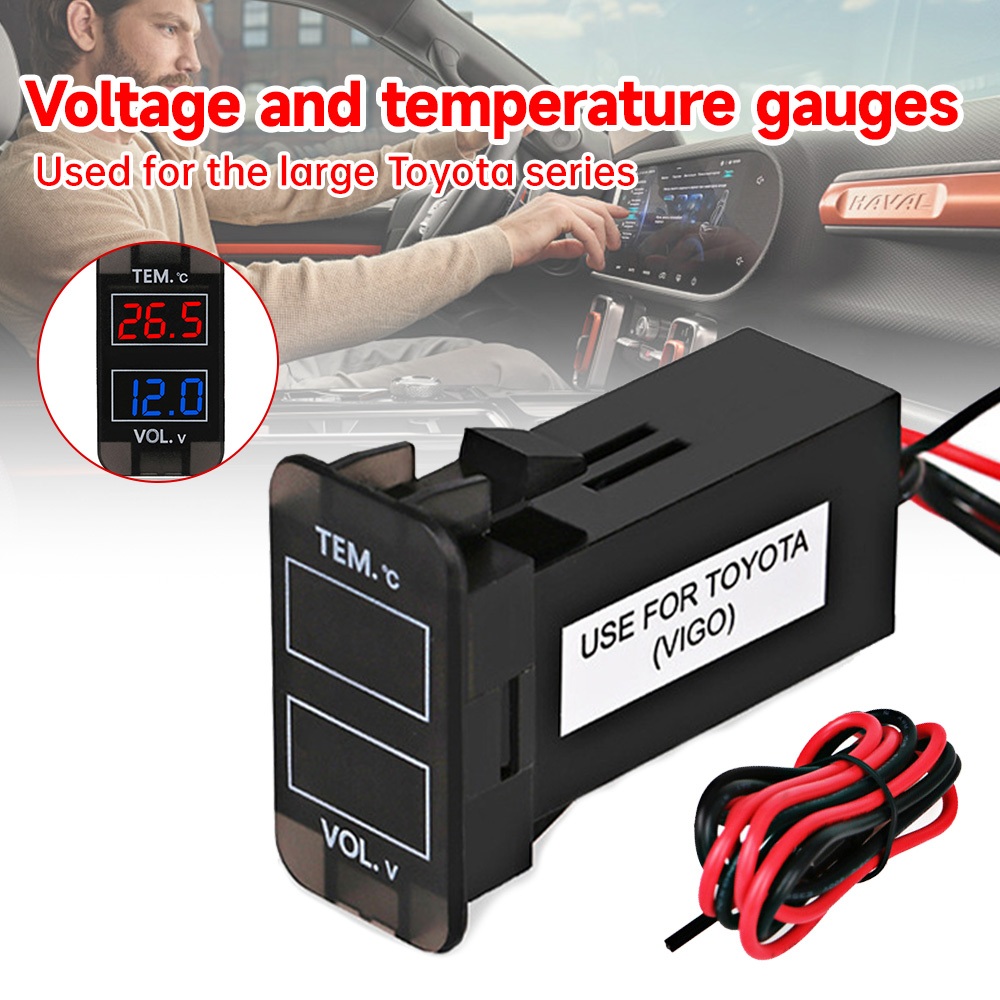 เครื่องวัดอุณหภูมิโวลต์มิเตอร์ดิจิทัล LED แบบเรียลไทม์ จอแสดงผลคู่ ติดตั้งง่าย สีดํา สําหรับรถยนต์ TOYOTA