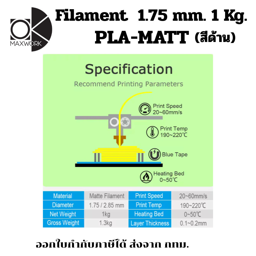 Filament เส้นใยพลาสติก Ok Maxwork PLA Matte สีด้าน ขนาด 1.75 มม. น้ำหนัก 1 กก. ออกใบกำกับภาษีได้
