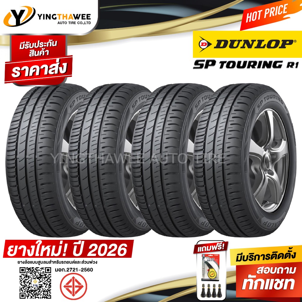 185/65R14 DUNLOP รุ่น SP TOURING R1 ชุด 4 เส้น (ปี26) แถมเกจเหลือง1ตัว+จุ๊บลมยาง4ตัว ยางรถยนต ์ขอบ14