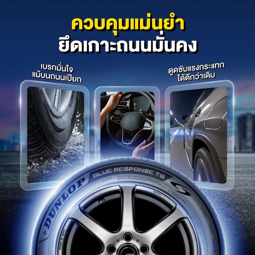225/45R18 DUNLOP รุ่น BLUE RESPONSE TG 4 เส้น (ยางใหม่ปี2025) แถมเกจเหลือง 1 ตัว + จุ๊บลมยางแท้ 4 ตัว (ยางขอบ18)