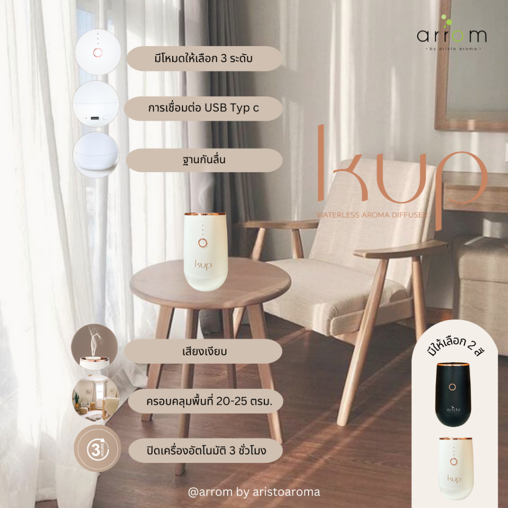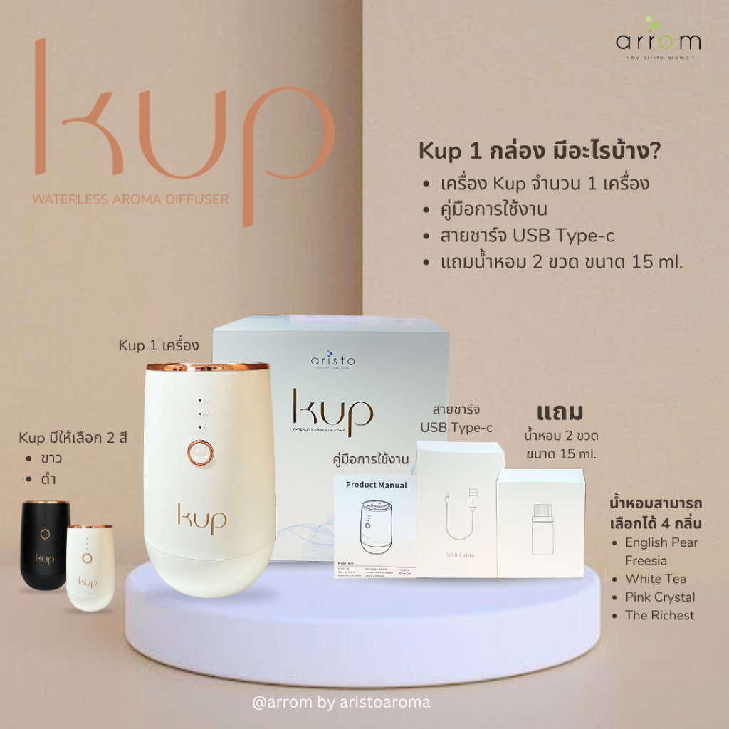 (KUP) เครื่องพ่นอโรม่า กระจายกลิ่นหอมขนาดพกพา ไม่ใช้น้ำ (แถมฟรีน้ำหอม 15ml 2 ขวด มูลค่า 480 บาท) | Arrom by Aristo Aroma