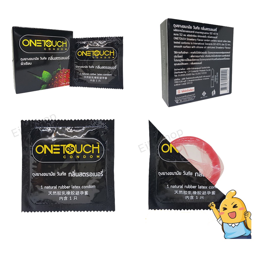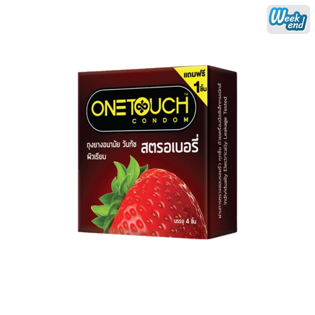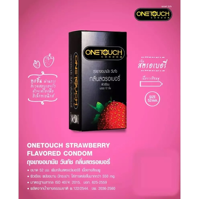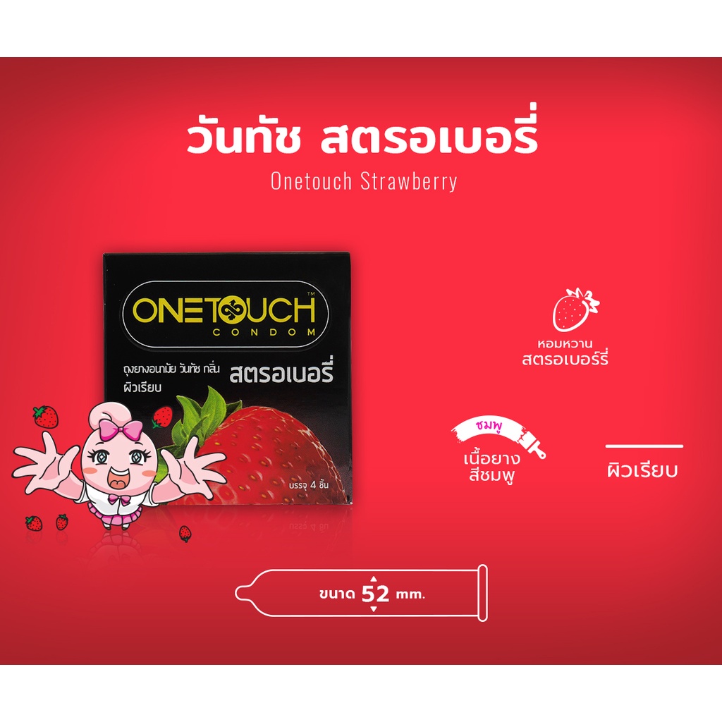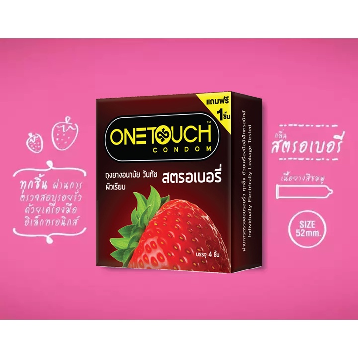 OneTouch วันทัช Strawberry ถุงยางอนามัย กลิ่นสตรอเบอร์รี่ ผิวเรียบ ขนาด 52 มม. (กล่องเล็ก 4 ชิ้น /กล่องใหญ่ 12 ชิ้น)