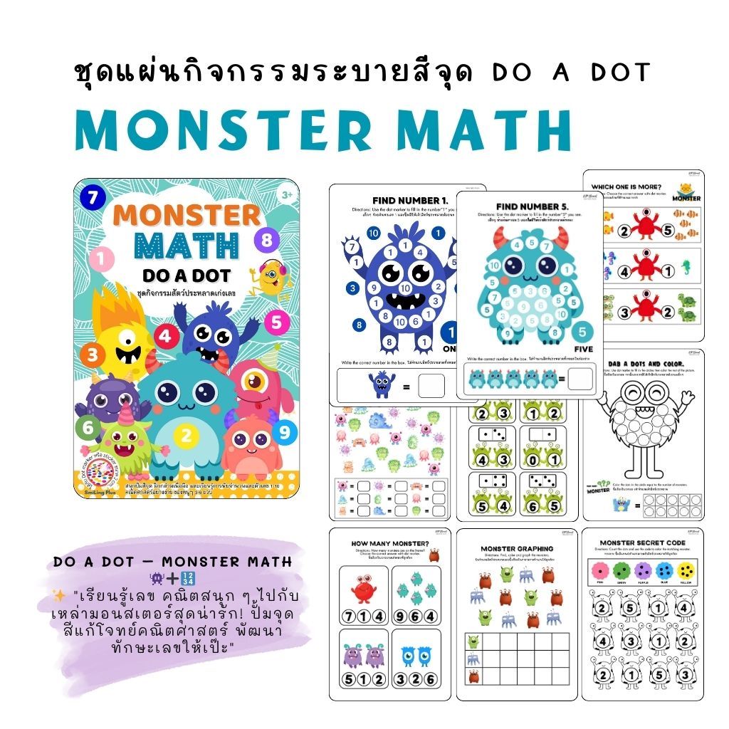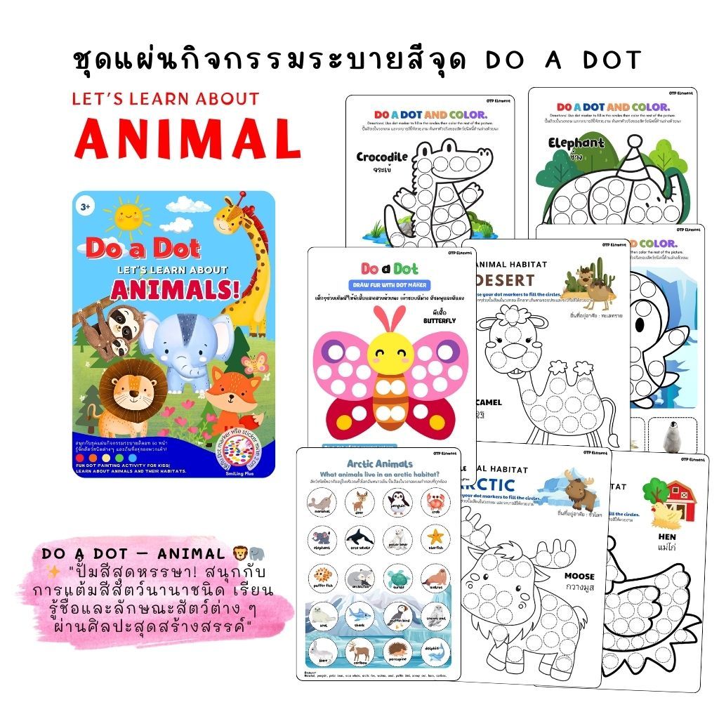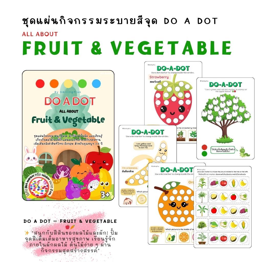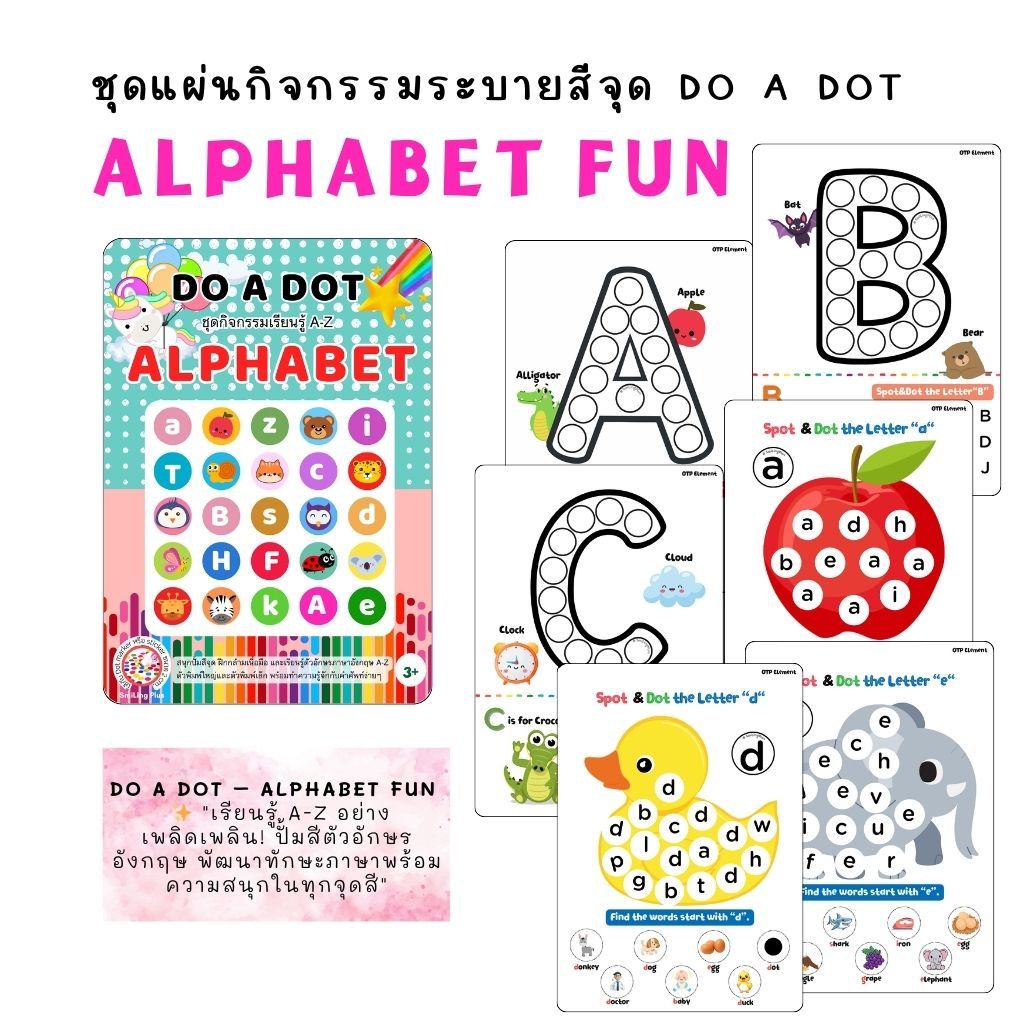 Dot activity worksheets ชุดแผ่นกิจกรรมปั๊มสีดอท สำหรับ dot marker สติ๊กเกอร์วงกลม สีเมจิก สีน้ำฯลฯ