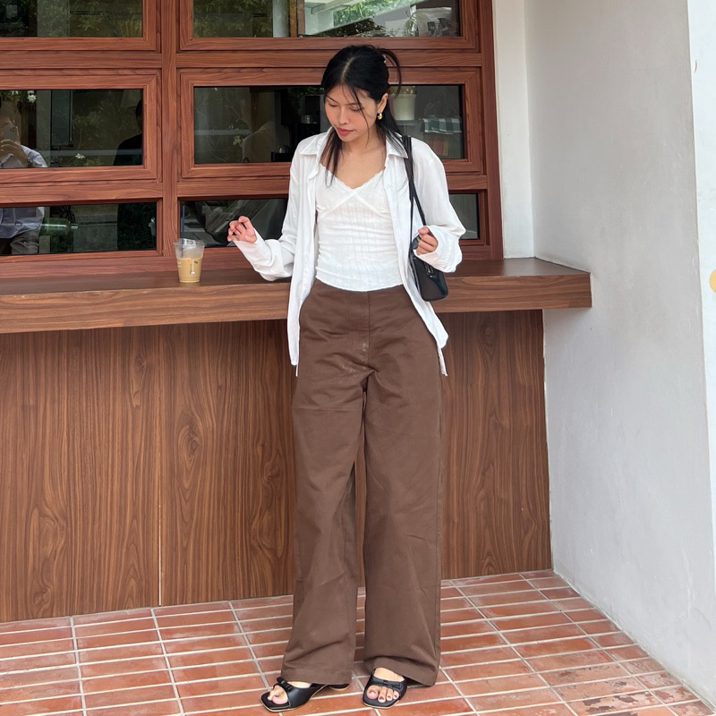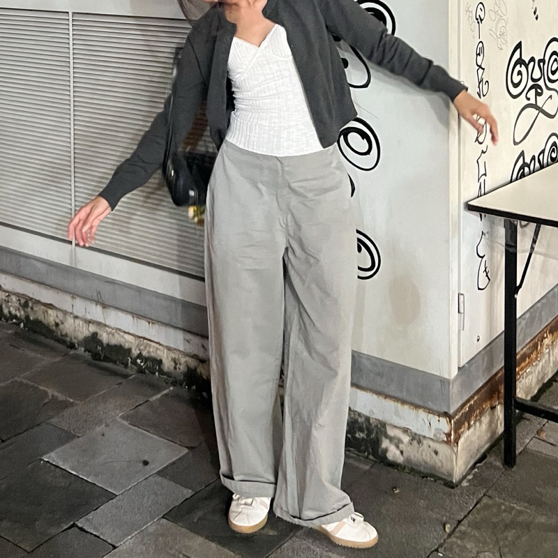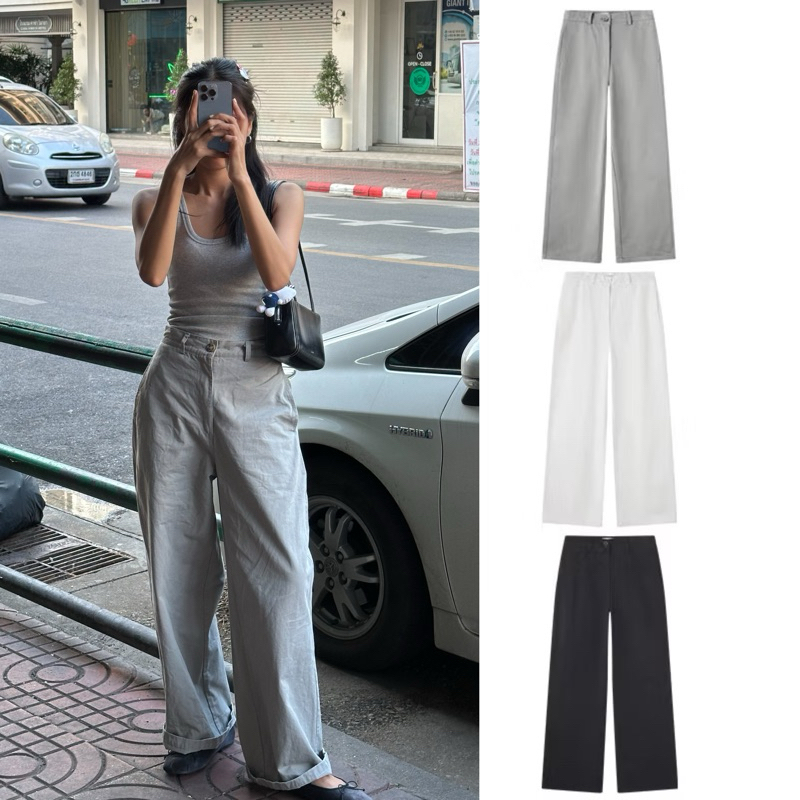 [โปร4.4 ลด5% 1-6เมษายน] #28BOTTOM72🧸 เกงเกงทรงหลวมขากระบอกใหญ่เอวสูง