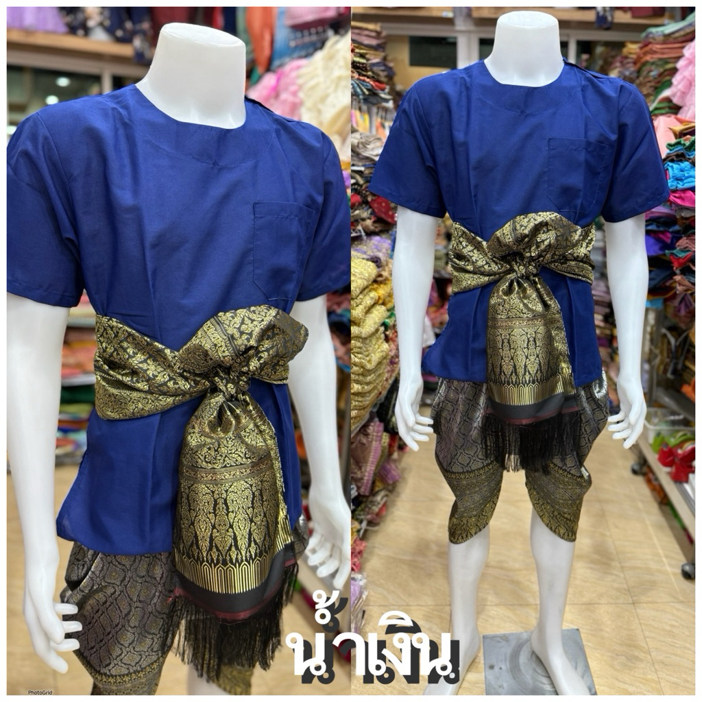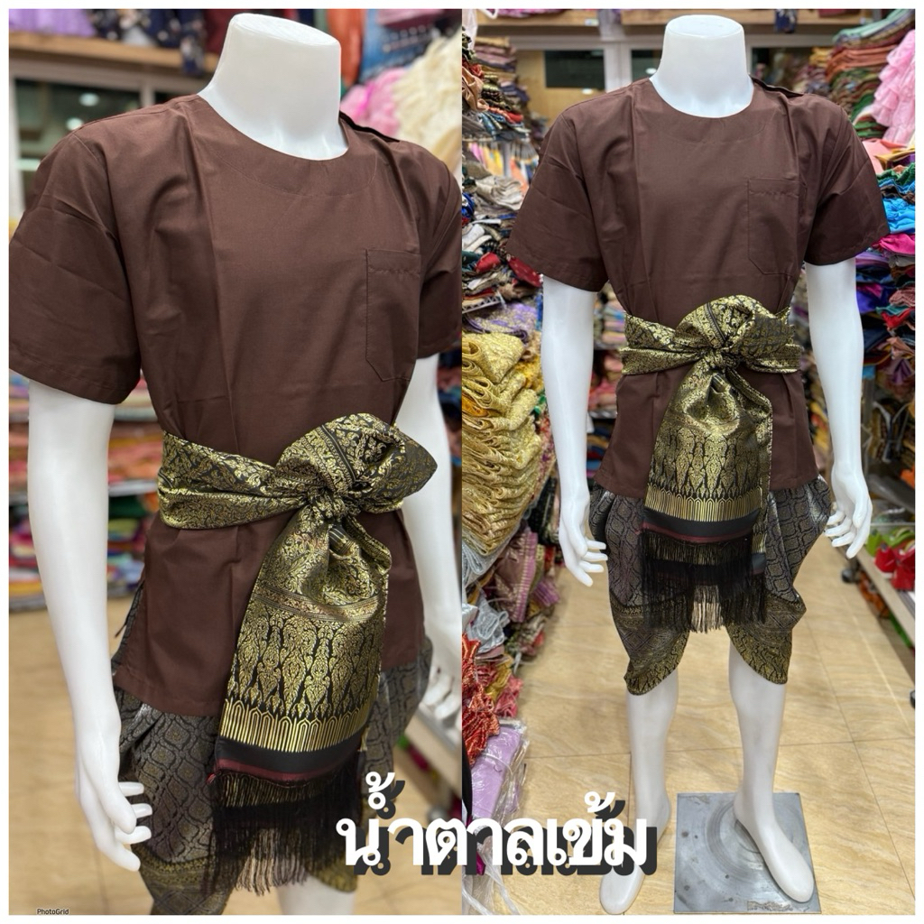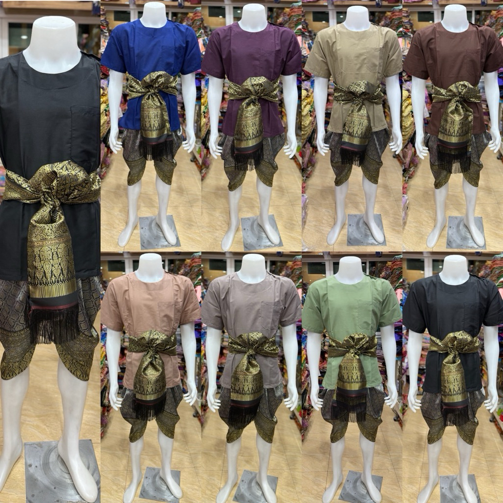 ชุดไทยผู้ชายเสื้อคอกลมผ้า TC โทนสีเข้ม🖤