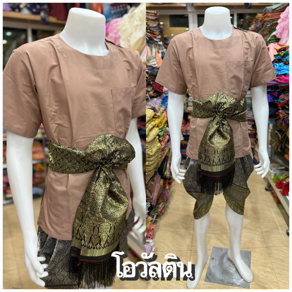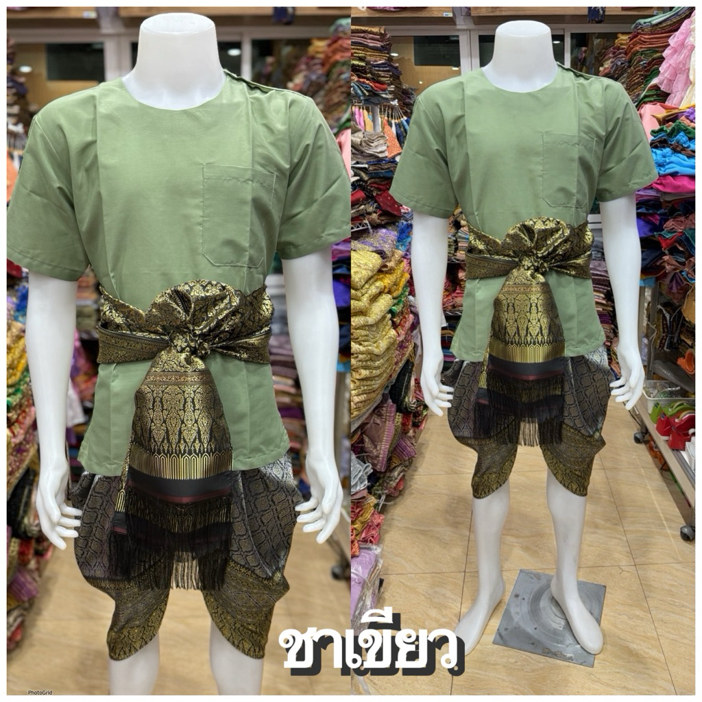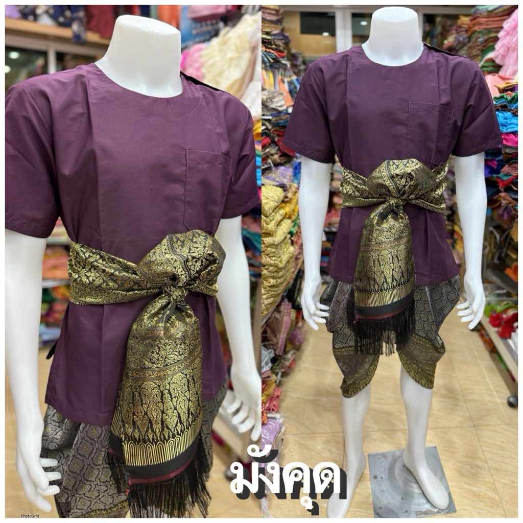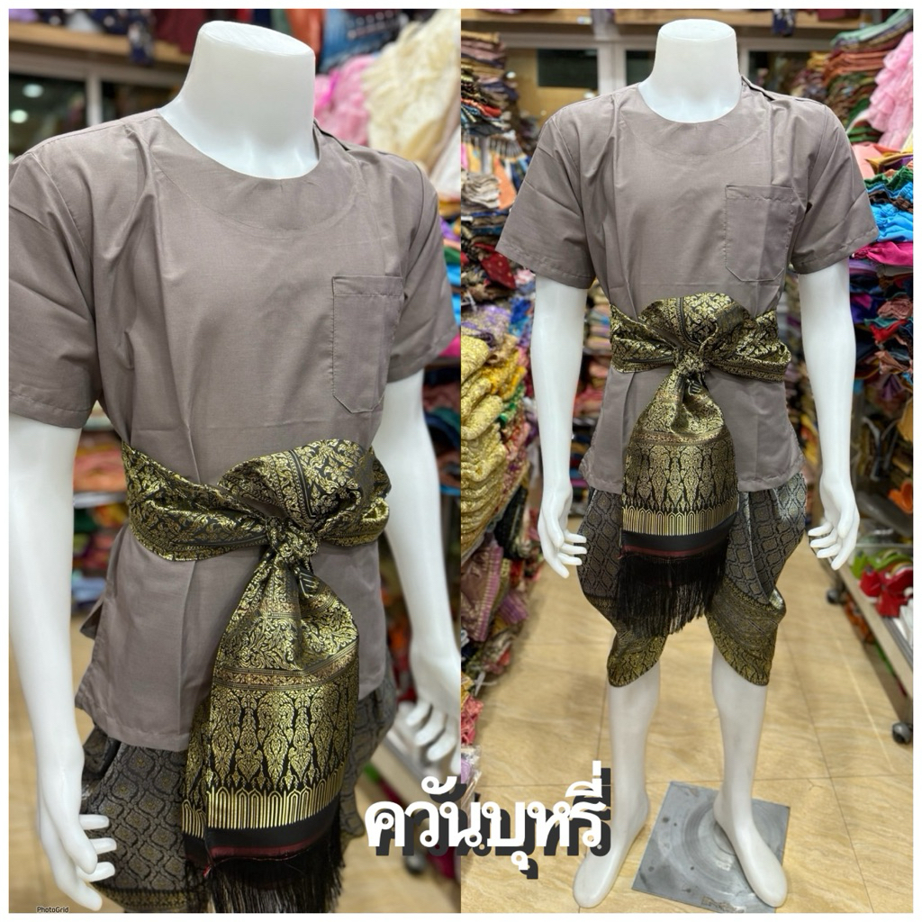 ชุดไทยผู้ชายเสื้อคอกลมผ้า TC โทนสีเข้ม🖤