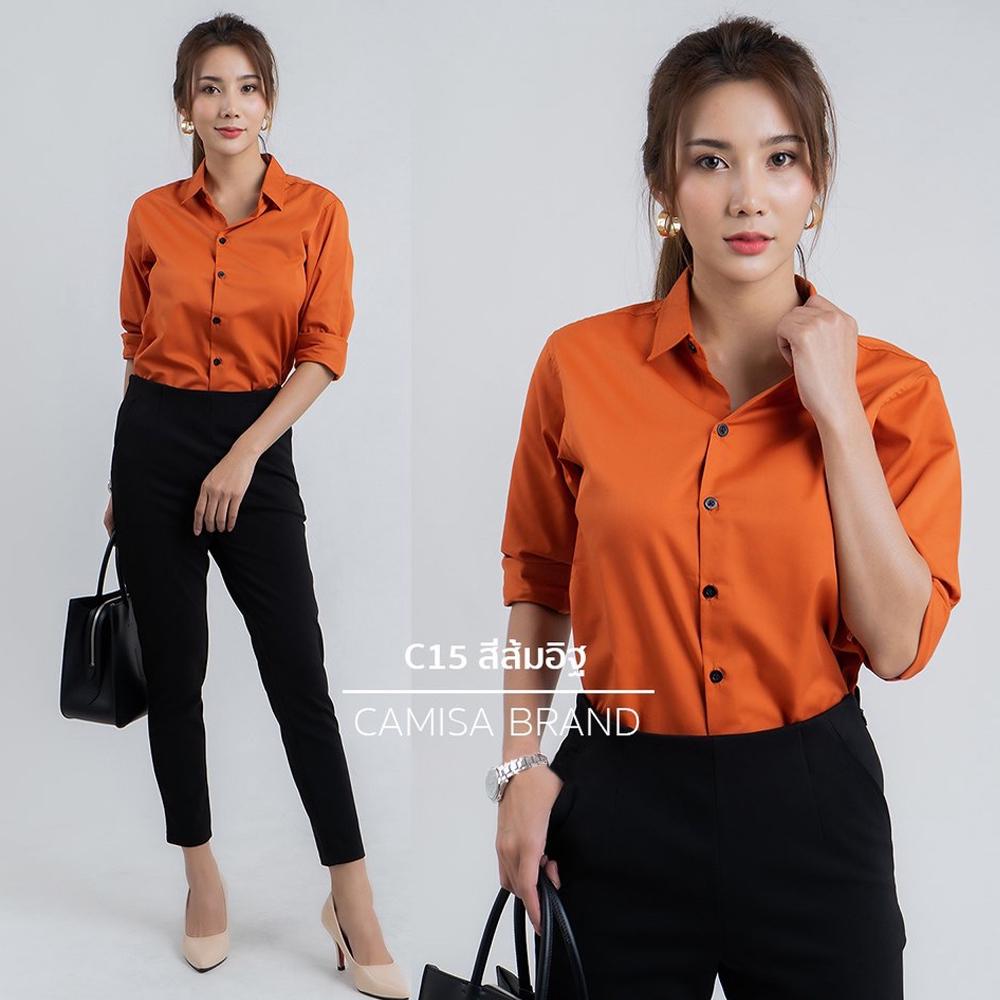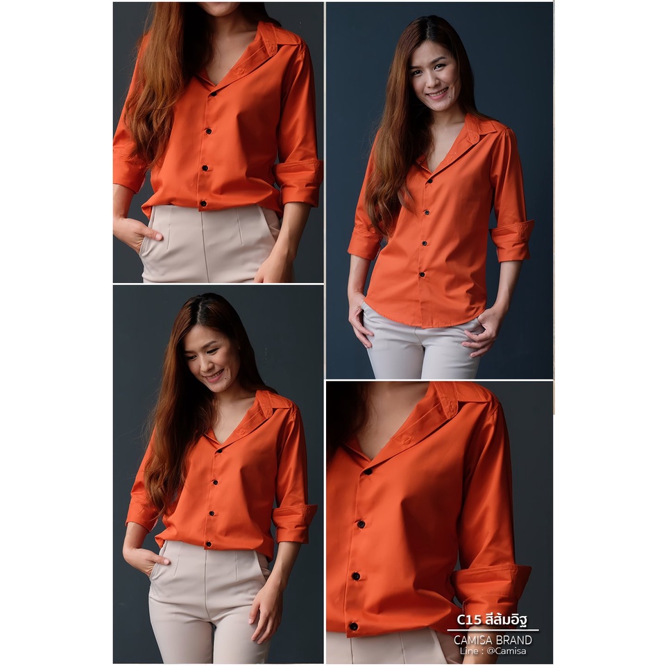 (C15 สีส้มอิฐ) [ใส่โค้ด FWPDXP ลดทันที 45] ผ้าCotton เสื้อทำงาน เสื้อใส่เที่ยว
