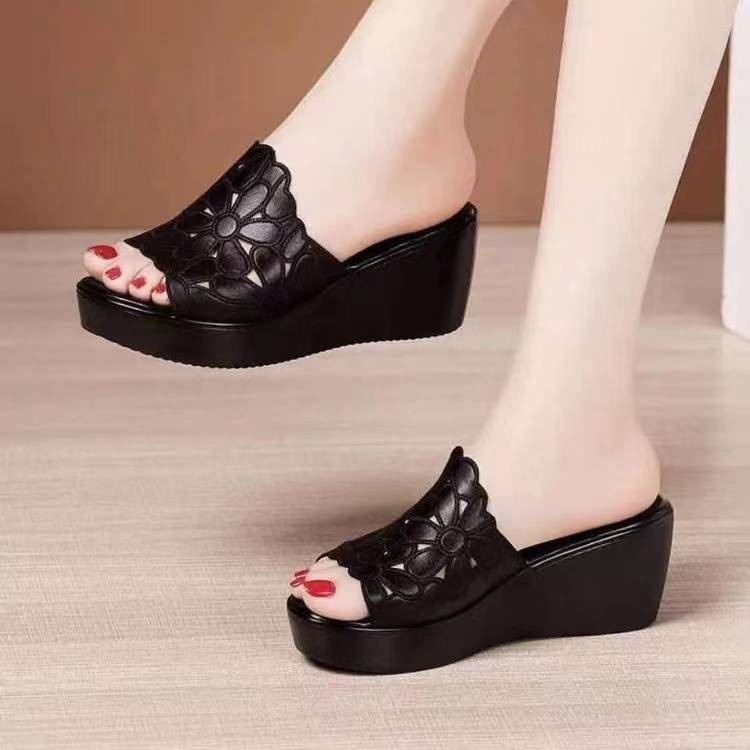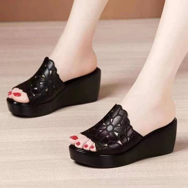 💥สินค้าใหม่💥รองเท้าแฟชั่นลายดอกไม้ ดีไซด์สวย หรูหรา ส้นตึก-ส้นเตารีด สูง 2.5 นิ้ว มี 2 สี 2B2
