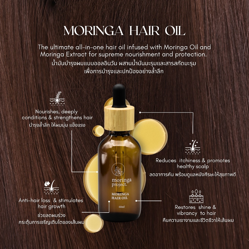 Moringa Project น้ำมันมะรุมบำรุงผม 60ml สูตร ลดผมลดผมร่วง ROSEMARY & BERGAMOT