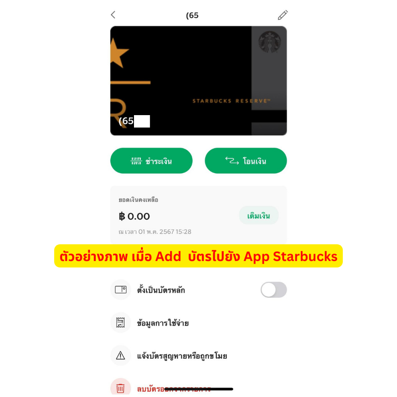 บัตร สตาร์บัคส์ พลาสติก Starbucks Card Reserve รุ่นที่ 1 ปี 2016 เลือกเลขได้ แถมซองใส่การ์ด ของแท้ 100%