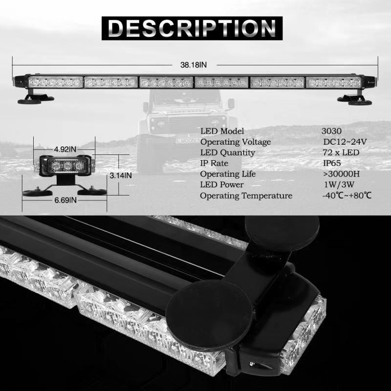 FS ไฟไซเรนติดหลังคา 319-6 12V-24V สีแดง-น้ำเงิน ไฟติดหลังคา 6ท่อน 4หน้า มีข้าง 97CM แสงแรง 3W