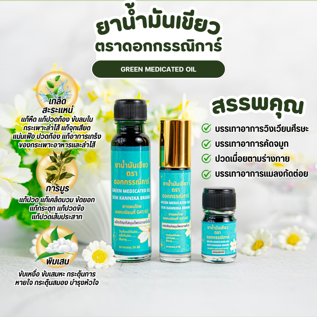 🌿 » 1 โหล « น้ำมันเขียวดอกกรรณิการ์ ขวดใหญ่ 24 ml