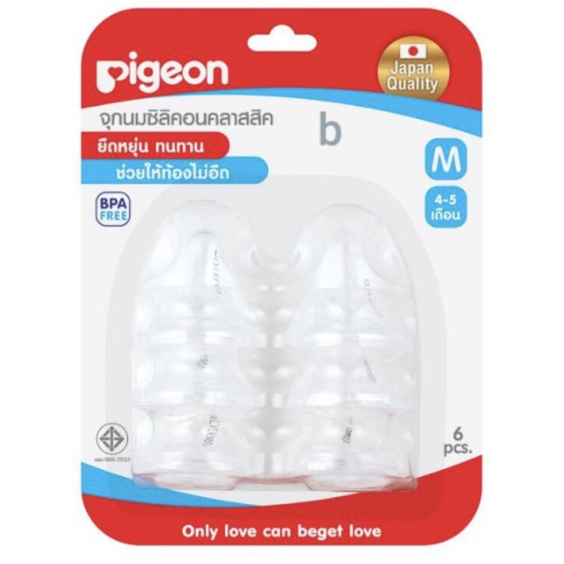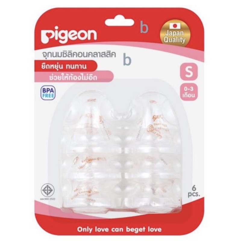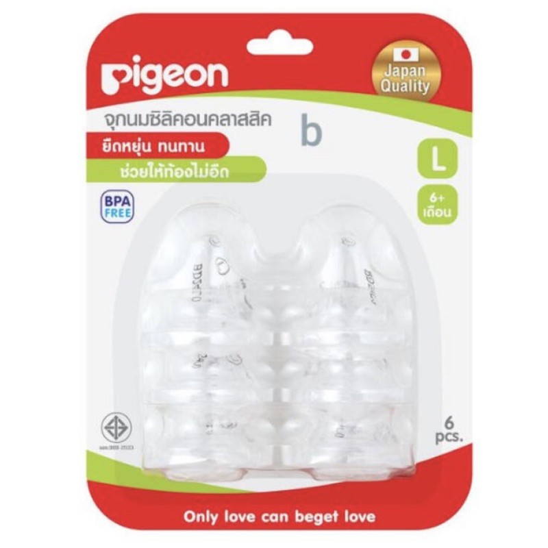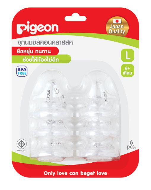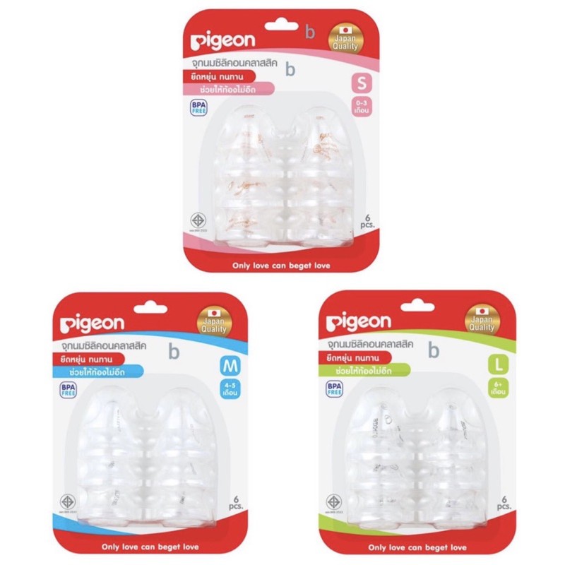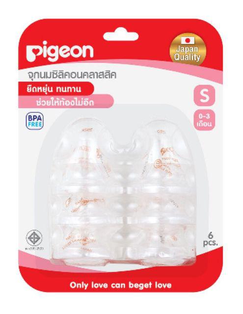 Pigeon พีเจ้น จุกนม ซิลิคอน(คลาสสิค)(ไซส์S,M,L)แพ็ค6จุก(1แพ็ค)