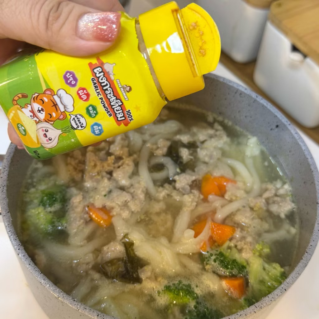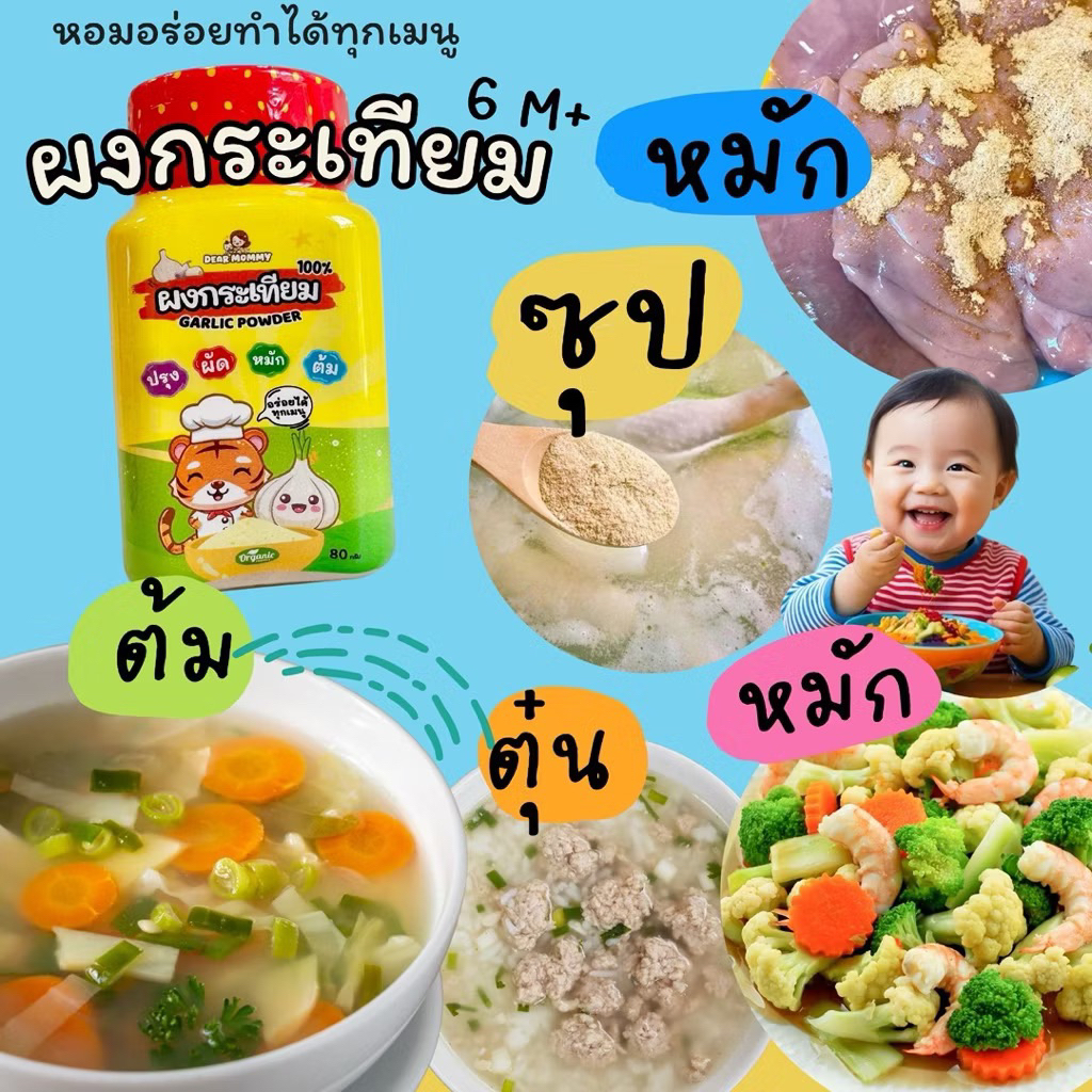 (แบบใหม่)ผงกระเทียมสำหรับเด็ก 6m+ ไม่เผ็ดไม่ฉุด หมักอาหาร ใส่ทำน้ำซุป ข้าวตุ๋น หอมอร่อย ทำให้เด็กเจริญอาหารมากยิ่งขึ้น