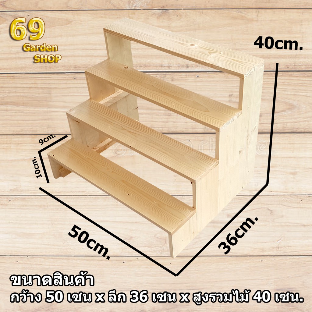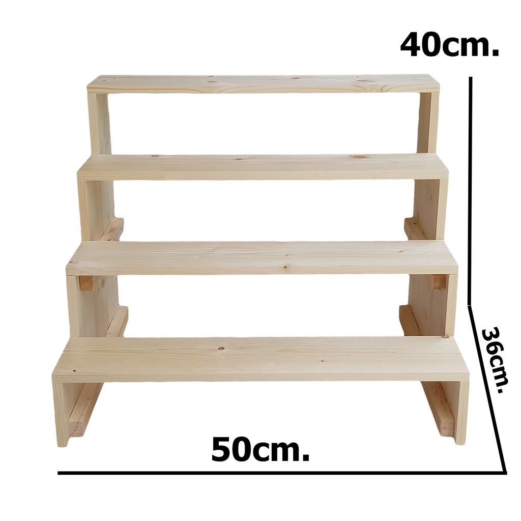 ชั้นวางของขั้นบันได 4 ชั้น โปร่ง สูงขั้นละ 10cm. (กว้าง 50cm x ลึก 36cm x สูง 40cm)
