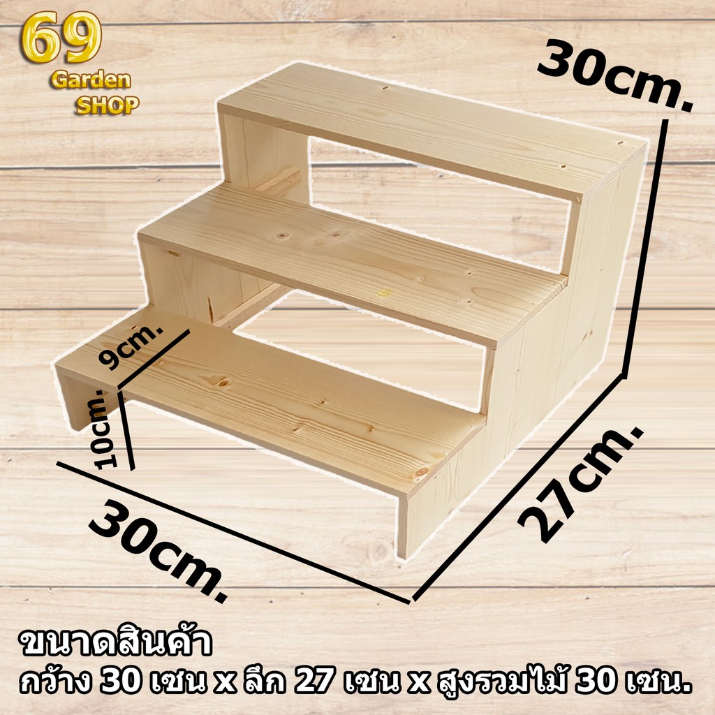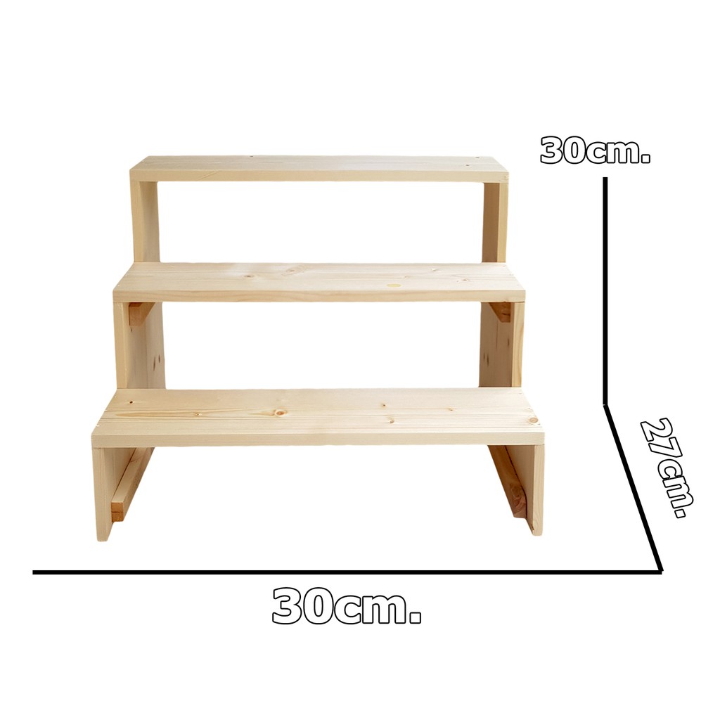 ชั้นวางของขั้นบันได 3 ชั้น โปร่ง สูงขั้นละ 10cm. (กว้าง 30cm x ลึก 27cm x สูง 30cm)