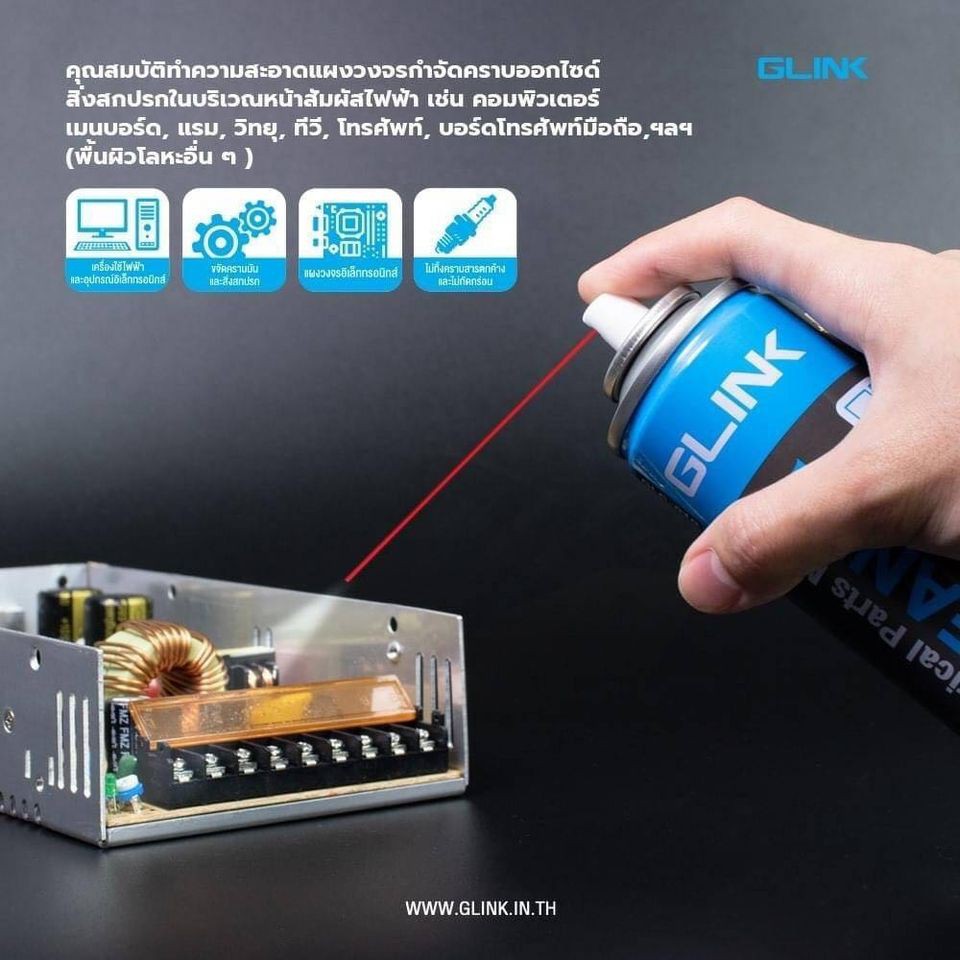 น้ำยาทำความสะอาดอเนกประสงค์ Glink Contact Cleaner GLC-010 220ml. แห้งสนิทไว ไม่ทิ้งคราบและสารตกค้าง
