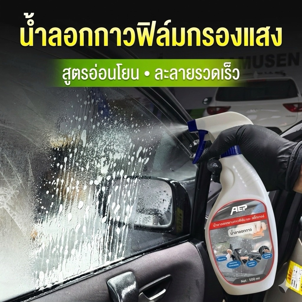 500ml นำ้ยาลอกคราบกาวฟิล์มกระจกสติ๊กเกอร์ไวนิฟิล์มกรองแสงเคฟล่าทำความสะอาดกระจก 500ml
