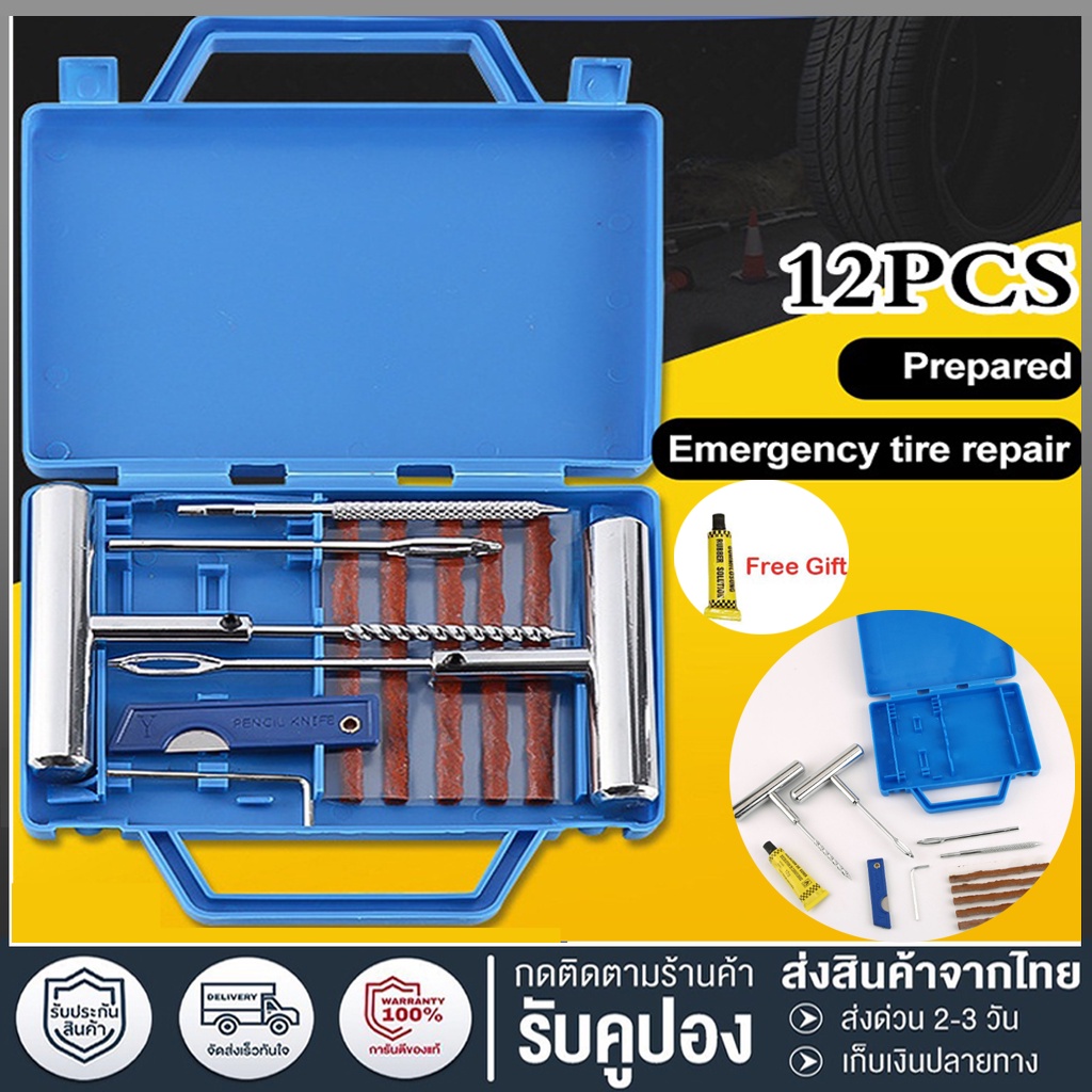 12pcs ชุดปะยางฉุกเฉิน ชุดเข็มปะยาง ชุดซ่อมยางรถยนต์ ตัวหนอน ไหมปะยาง แบบเหล็ก ชุดไหมปะยาง