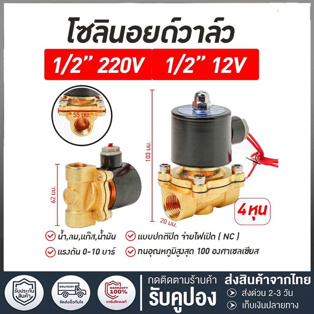 Solenoid valve โซลินอยด์วาล์ว วาล์วไฟฟ้า วาล์วน้ำ วาล์วลม วาล์วแก ๊ส 12v 24V 220VAC