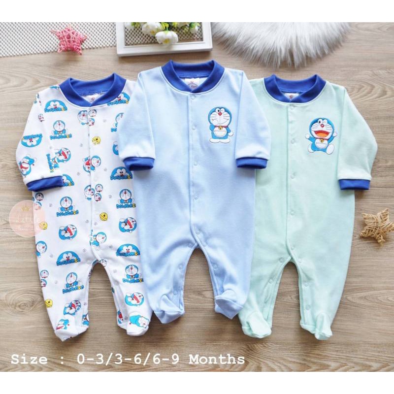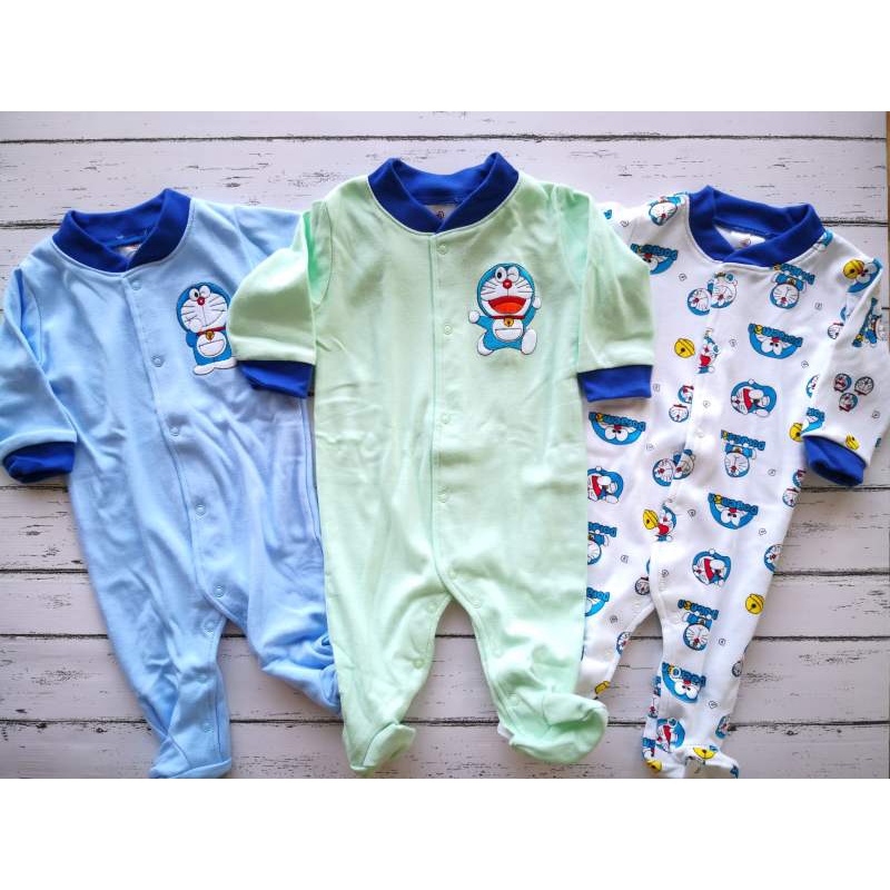 Doraemonชุดหมีเด็กขายาวแขนยาวคลุมเท้า ชุดนอนเด็กแรกเกิด-9เดือน ชุดโดเรม่อนสีฟ้า pack 3ชุด เสื้อผ้าเด็กแฟนซี ชุดแรกคลอด