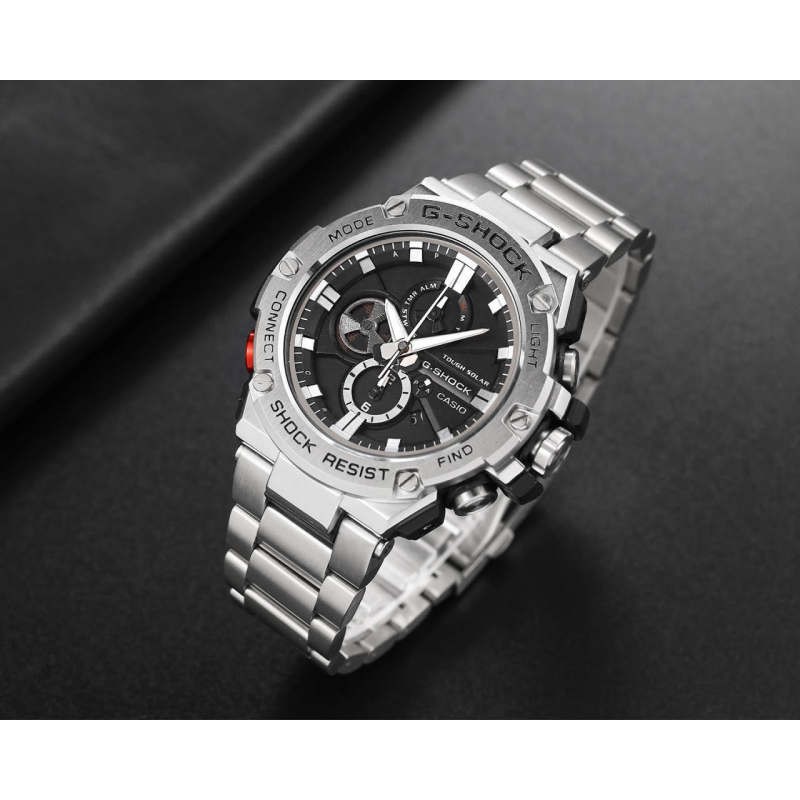 Casio G-Shock นาฬิกาข้อมือผู้ชาย สายเหล็ก รุ่น GST-B100D,GST-B100D-1A - สีดำ สีขาว