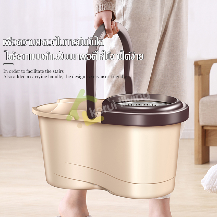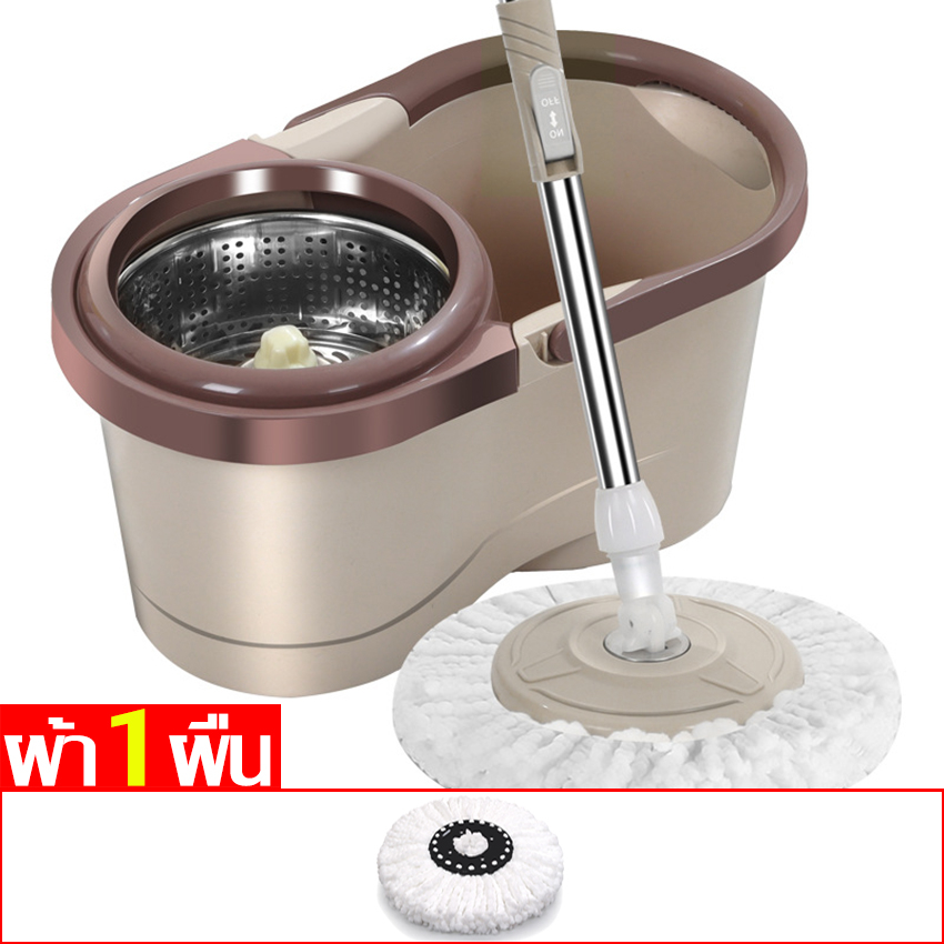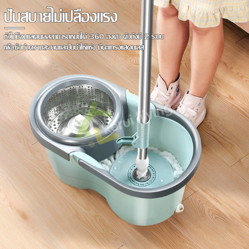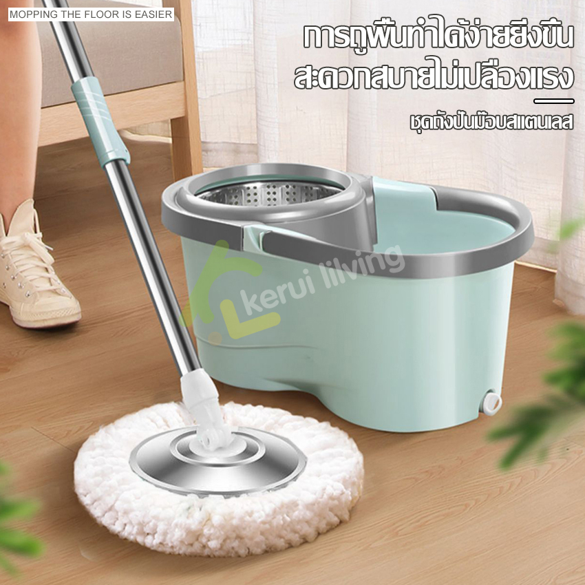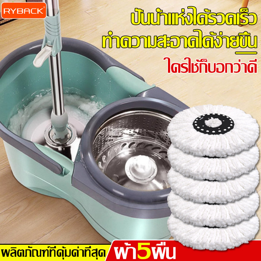 RYBACK ชุดถังปั่นม๊อบ ชุดไม้ถูพื้น ถังปั่นสแตนเลส ไม้ม็อบดันฝุ่น ม๊อบถูพื้น ชุดถังปั่นม๊อบสแตนเลส พร้อมไม้ถูพื้น