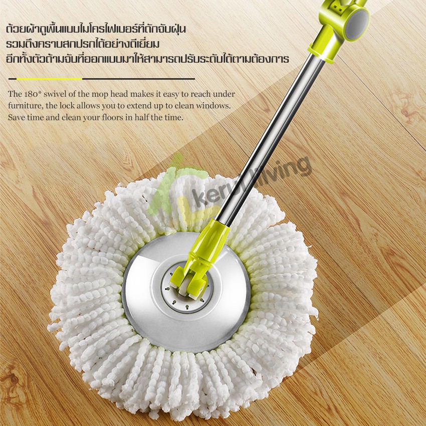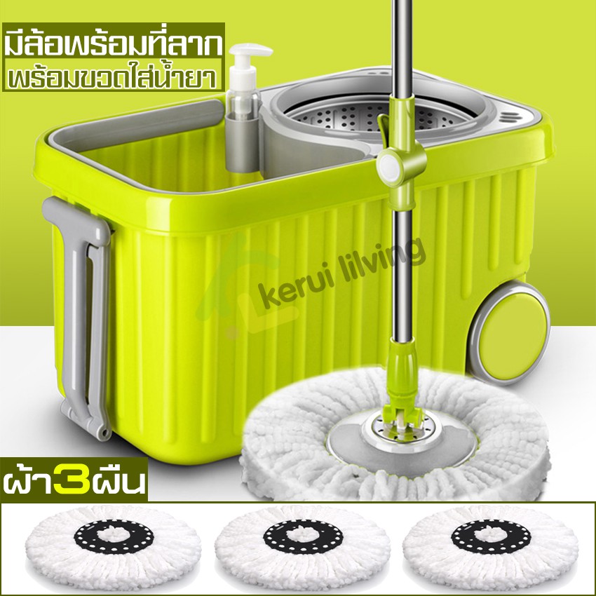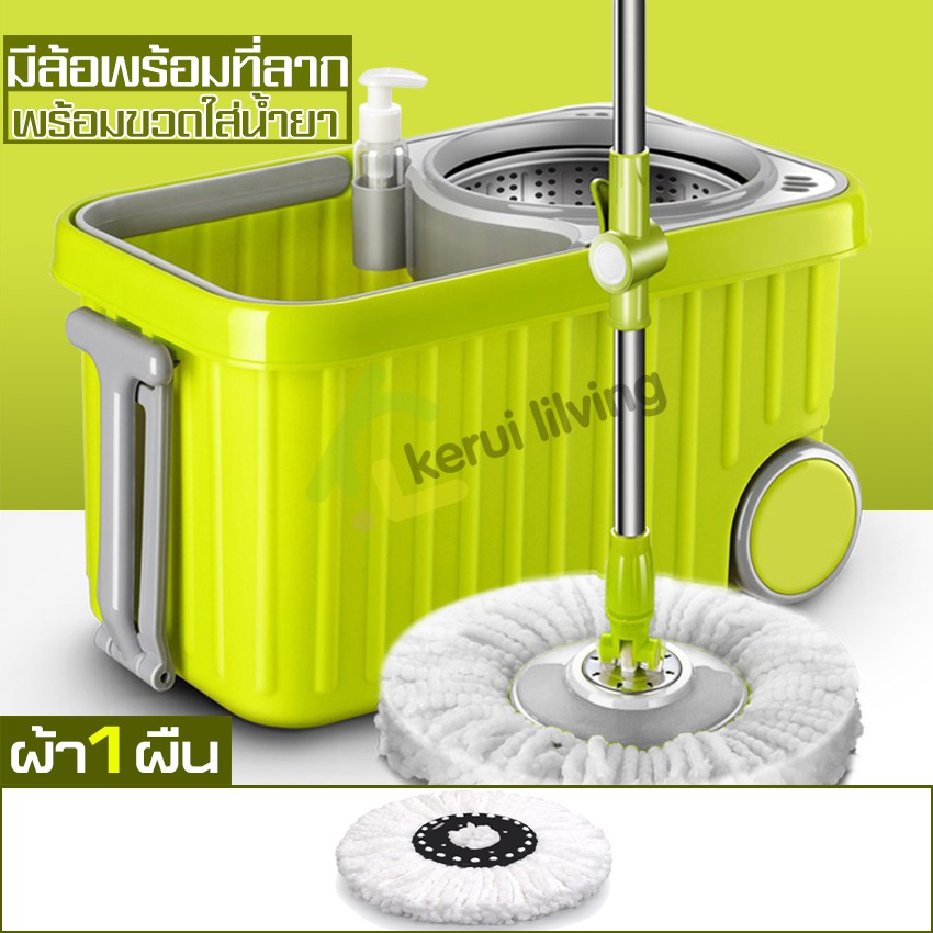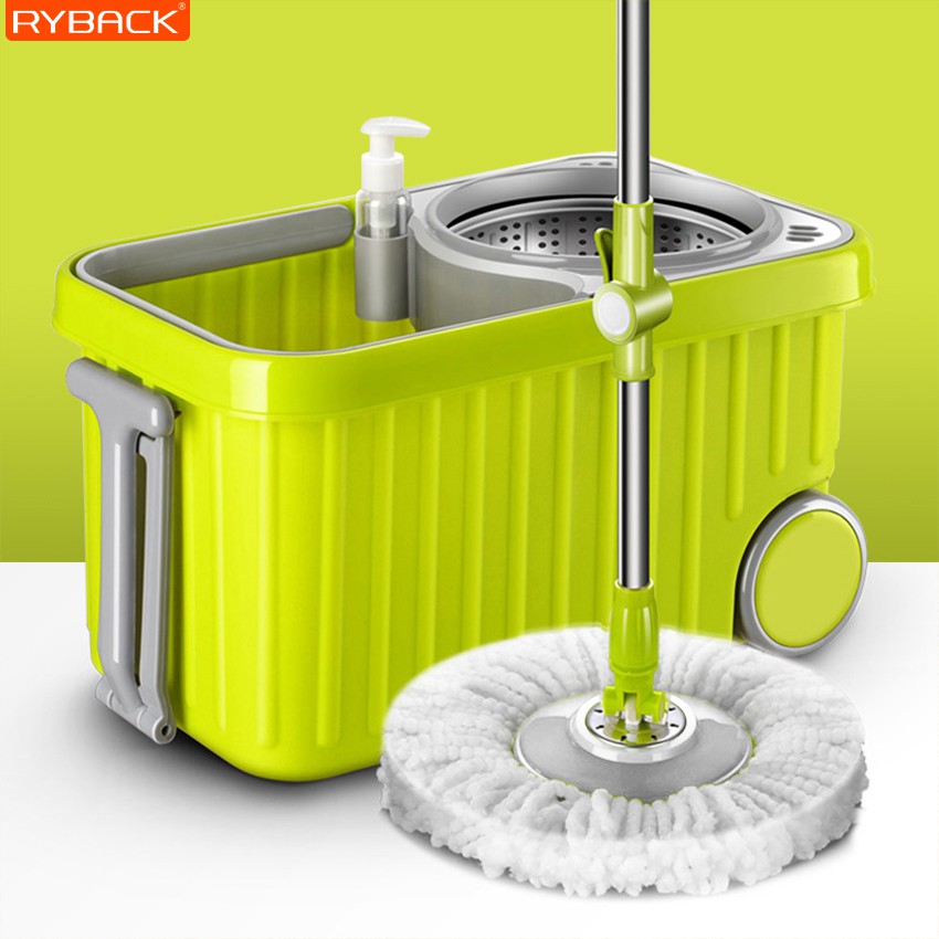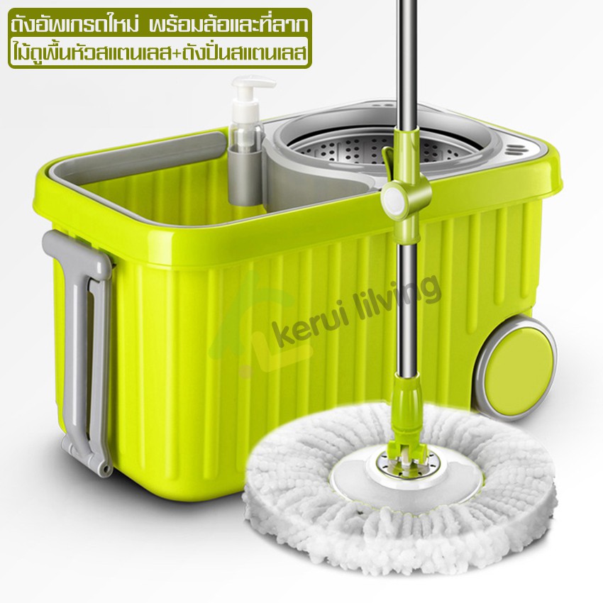 RYBACK ชุดถังปั่นม๊อบ ไม้ม็อบ หมุนได้ 360 องศา ม๊อบ ไม้ถูพื้นหัวสแตนเลส+ถังปั่นสแตนเลส(มีล้อ) ชุดไม้ถูพื้น ม๊อบถูพื้น