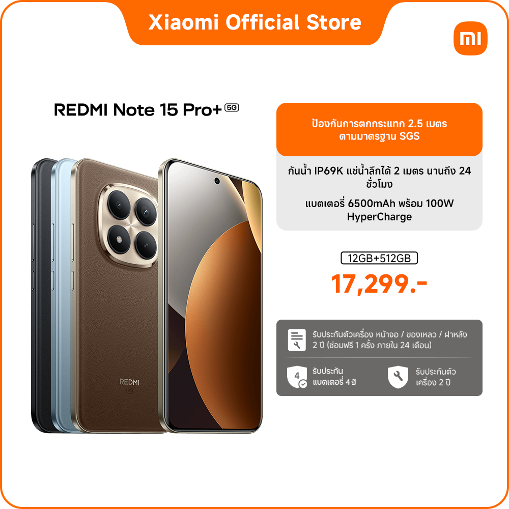 [NEW] REDMI Note 15 Pro+ 5G 12+256/12+512 ป้องกันการตกกระแทก 2.5 เมตรตามมาตรฐาน SGS