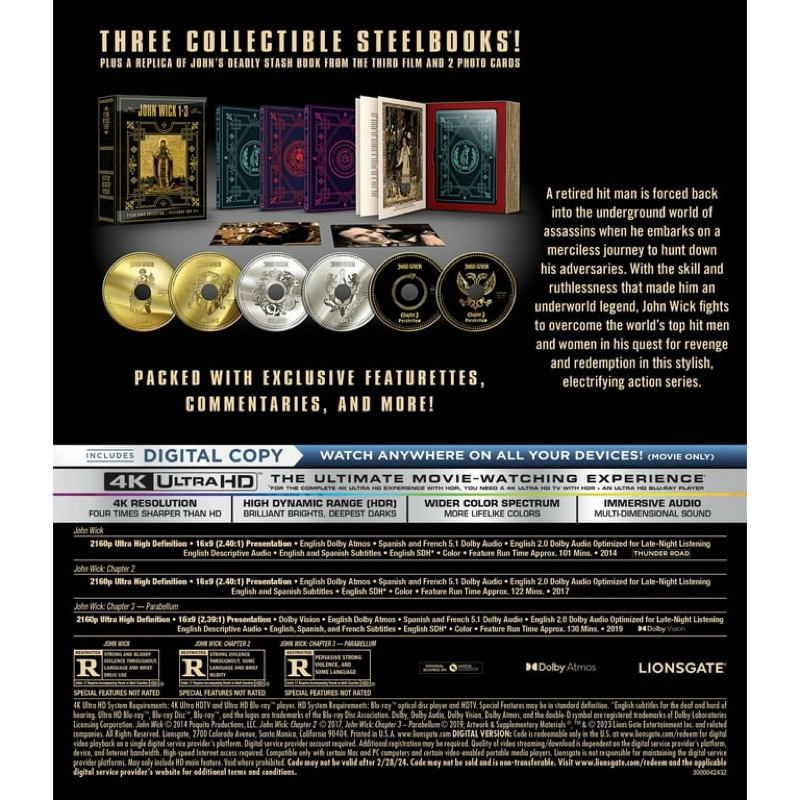 [ทักแชทก่อนสั่งซื้อ] John Wick Chapter 1-3 Stash Book Collection (Walmart Exclusive) (Steelbook Box Set) (4K + Blu-Ray)