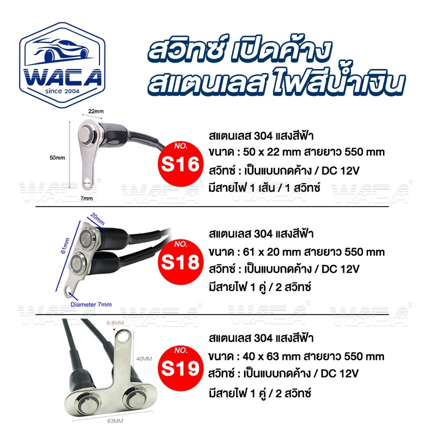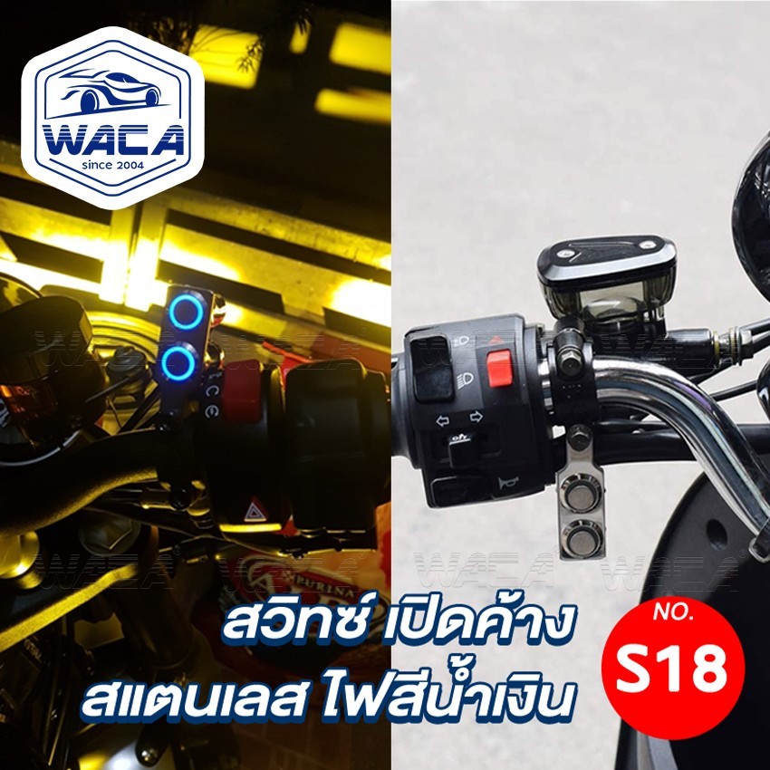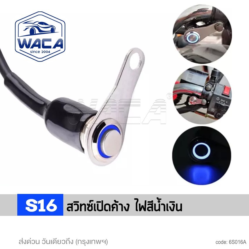 WACA สวิทซ์ เปิด-ปิด LED มีไฟ LED สำหรับมอเตอร์ไซค์ สวิตช์ปุ่มกด สวิทช์กันน้ำ 304 สแตนเลส ปุ่มกดDC-12V ส่งฟรี ^SA