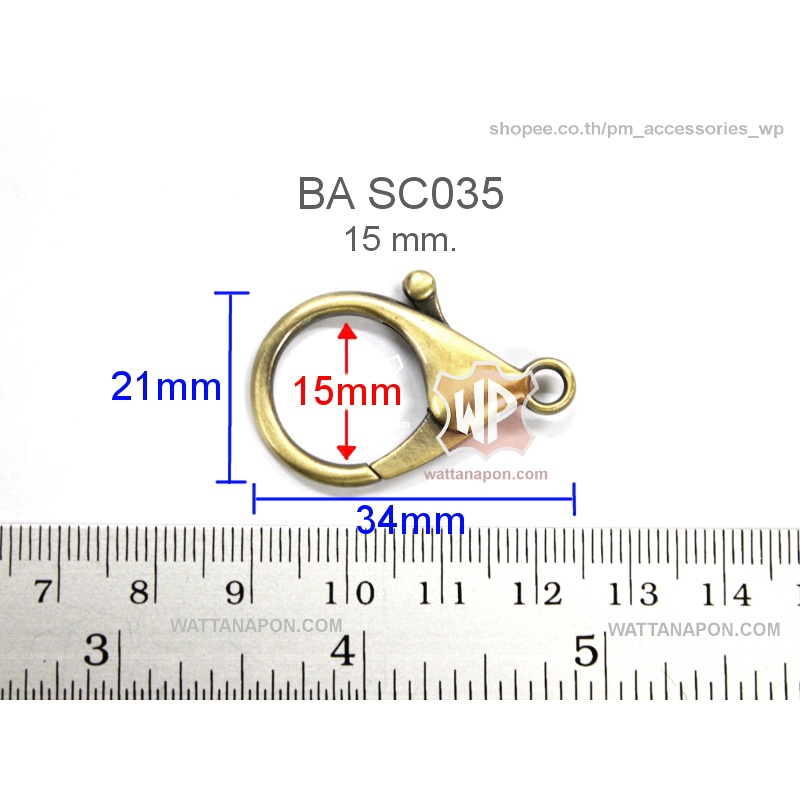 BA SC035 ตะขอก้ามปู ขนาด34x21มม. วงในตะขอกว้าง15มม. 2ชิ้น Snap Hook, lobster clasp 2 pieces