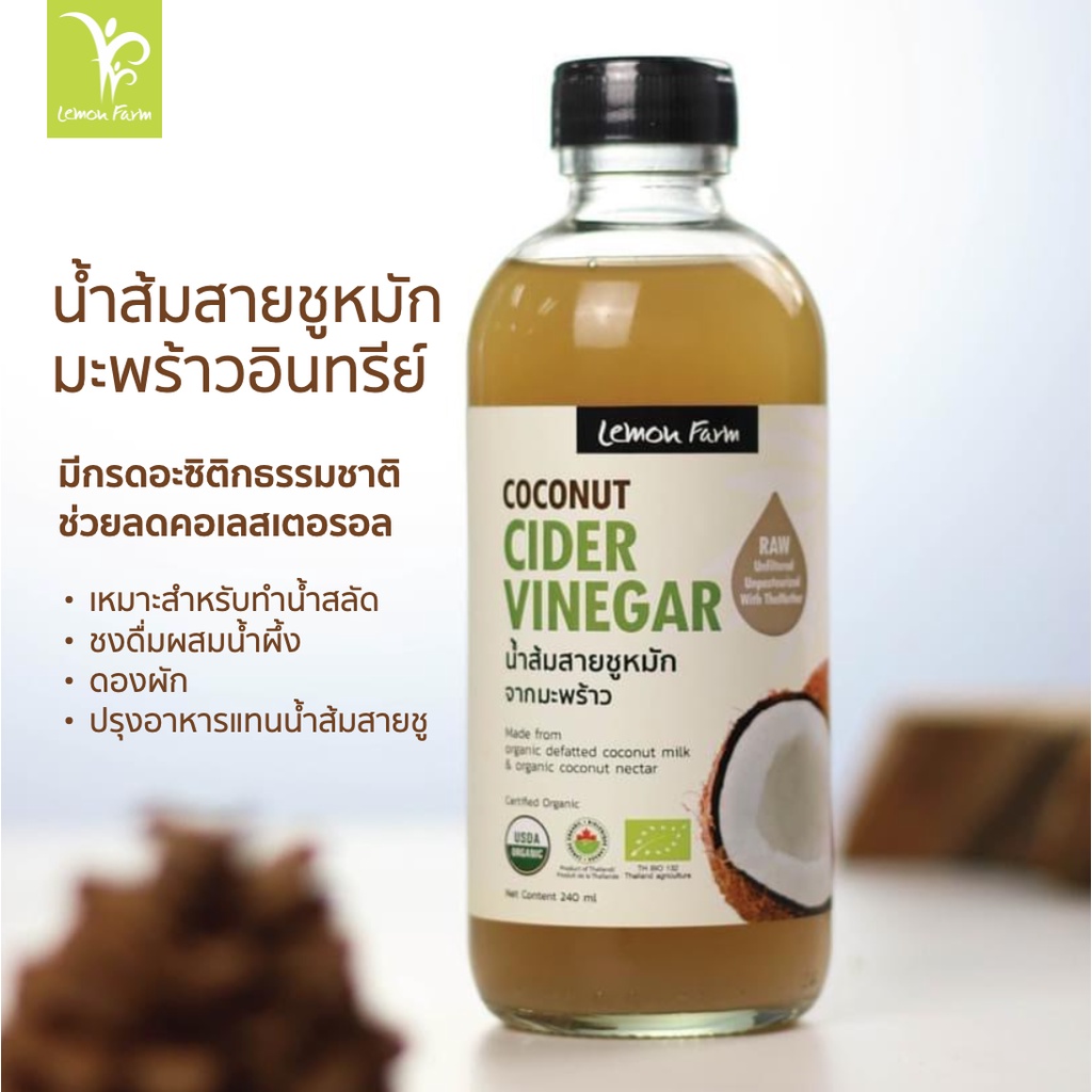 น้ำส้มสายชูหมักมะพร้าว Organic Lemon Farm 240 ml / CCV / Coconut Cider Vinegar / KETO คีโต