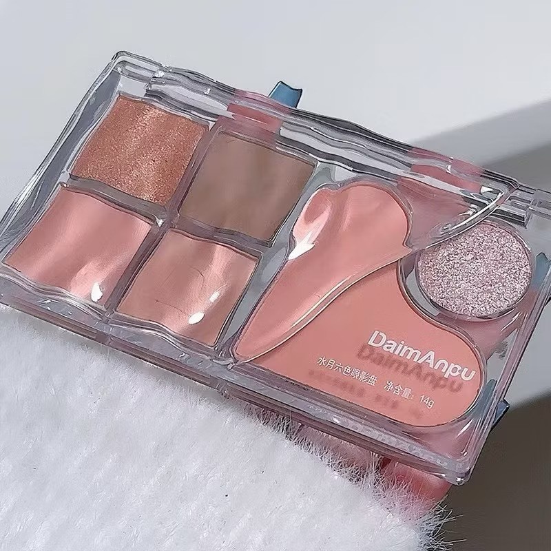N474 Daimanpu พาเลทอายแชโดว์ บลัชออน ไฮไลท์ กลิตเตอร์ เม็ดสีชัด กันน้ํา ติดทนนาน 6 สี