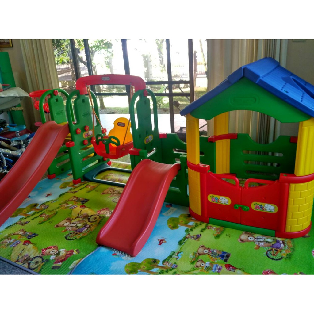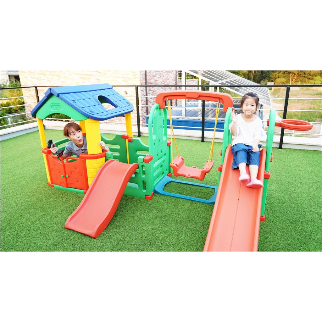 บ้านเด็กเกาหลี บ้านพลาสติกเด็กเล่น บ้านสนามเด็กเล่น คอกกั้นเด็ก สไลด์เดอร์ ชิงช้าเด็ก แป้นบาส Happy Box (JM-804C)