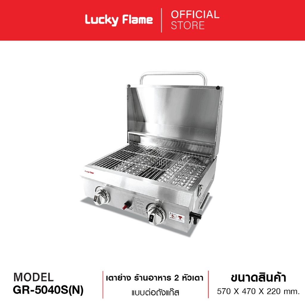 Lucky Flame เตาอบแก๊ส รุ่น GR-5040-SC(N) เตาย่างร้านอาหาร โครงสร้างสเตนเลส แบบมีฝาปิด